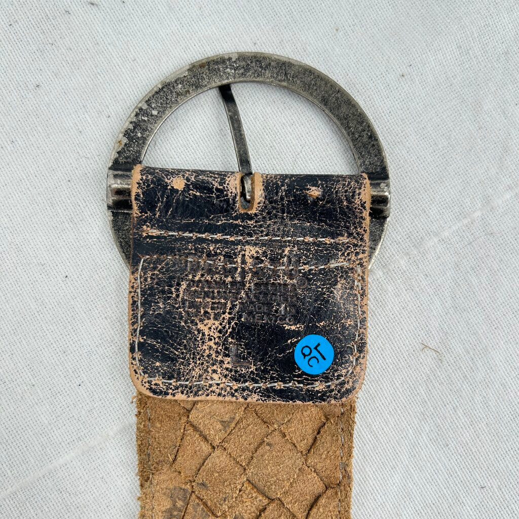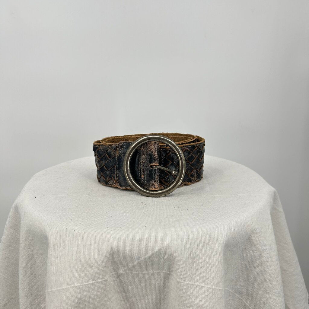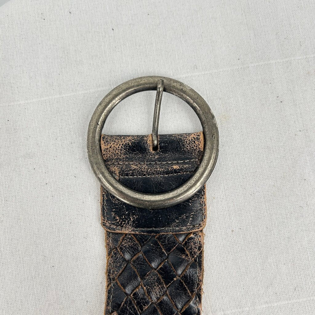 women Bed Stu Dreamweaver Distressed Woven Leather Black Brown Belt L