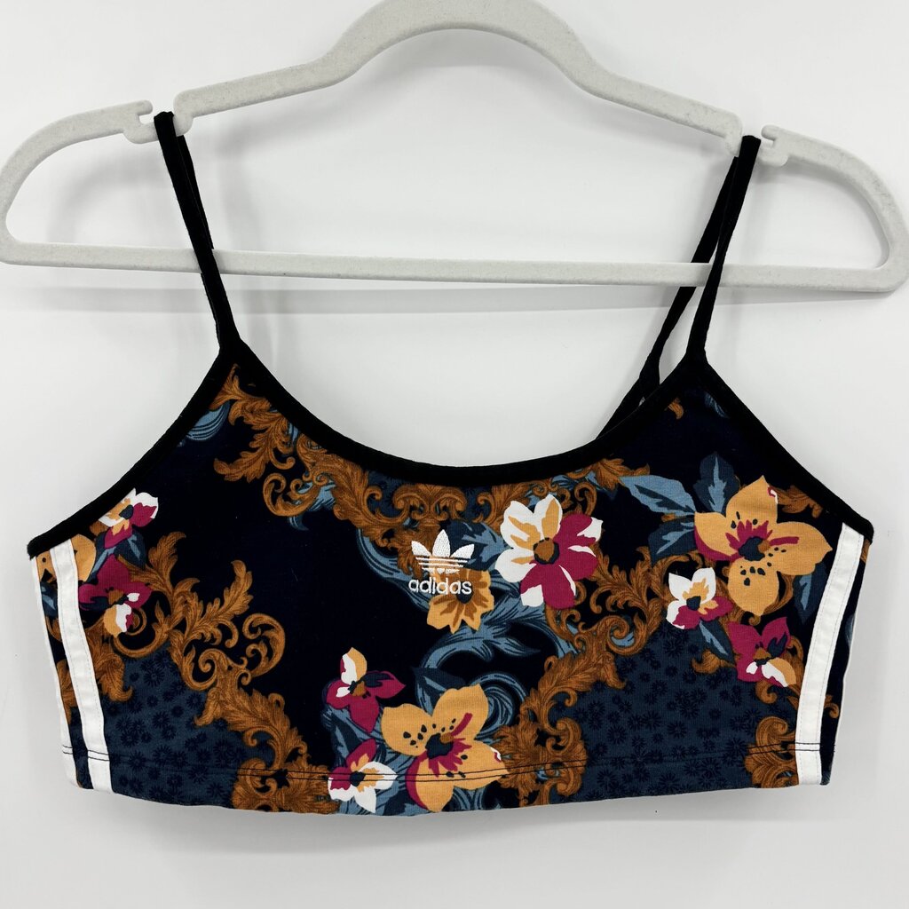 women Adidas Floral Print Sports Bra Blue Activewear L