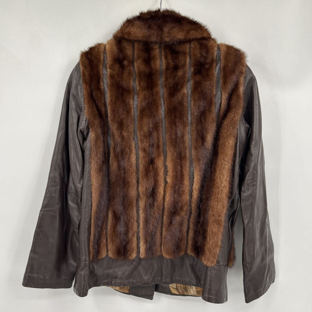 women Al Thompson Vintage Leather and Fur Chocolate Brown Jacket 6