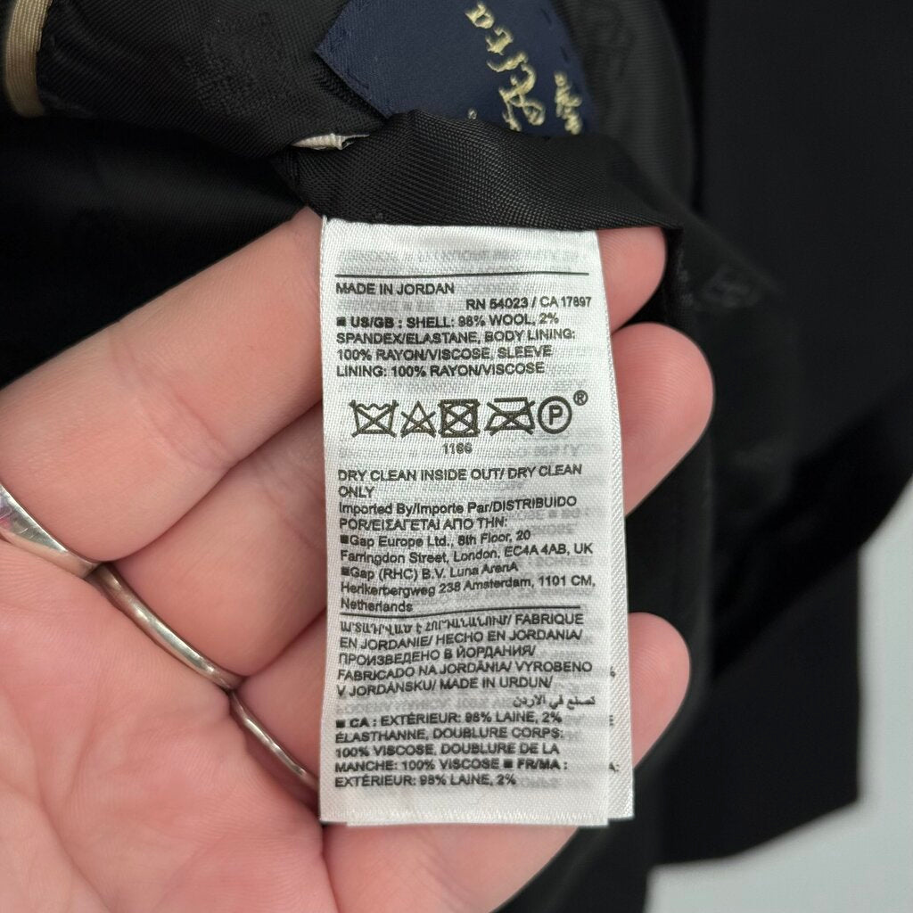 Classic, timeless wool blazer from Banana Republic. MSRP $250. New with tags. 98/2 Wool/Elastane. 42" bust, 16.5" shoulder, 25" sleeve, 28.5" from nape of neck.