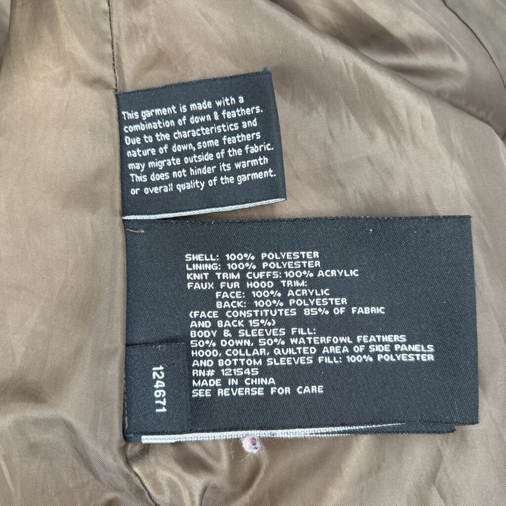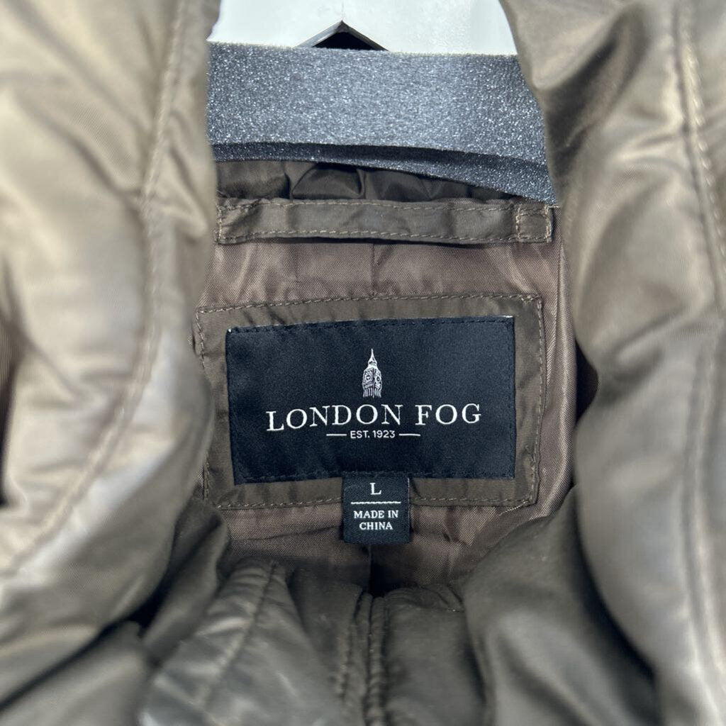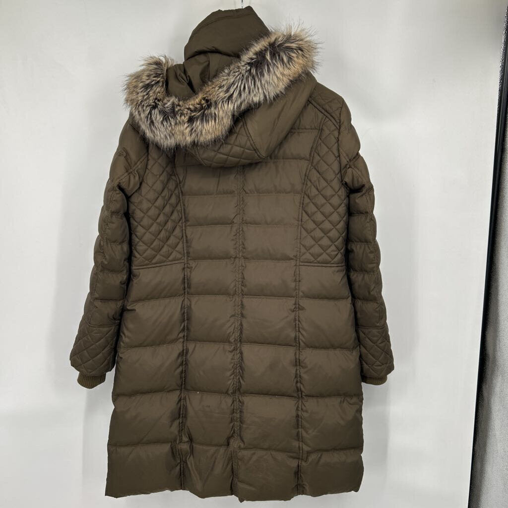 women London Fog Mid-Length Puffer w/Fur Trim Olive Coat L