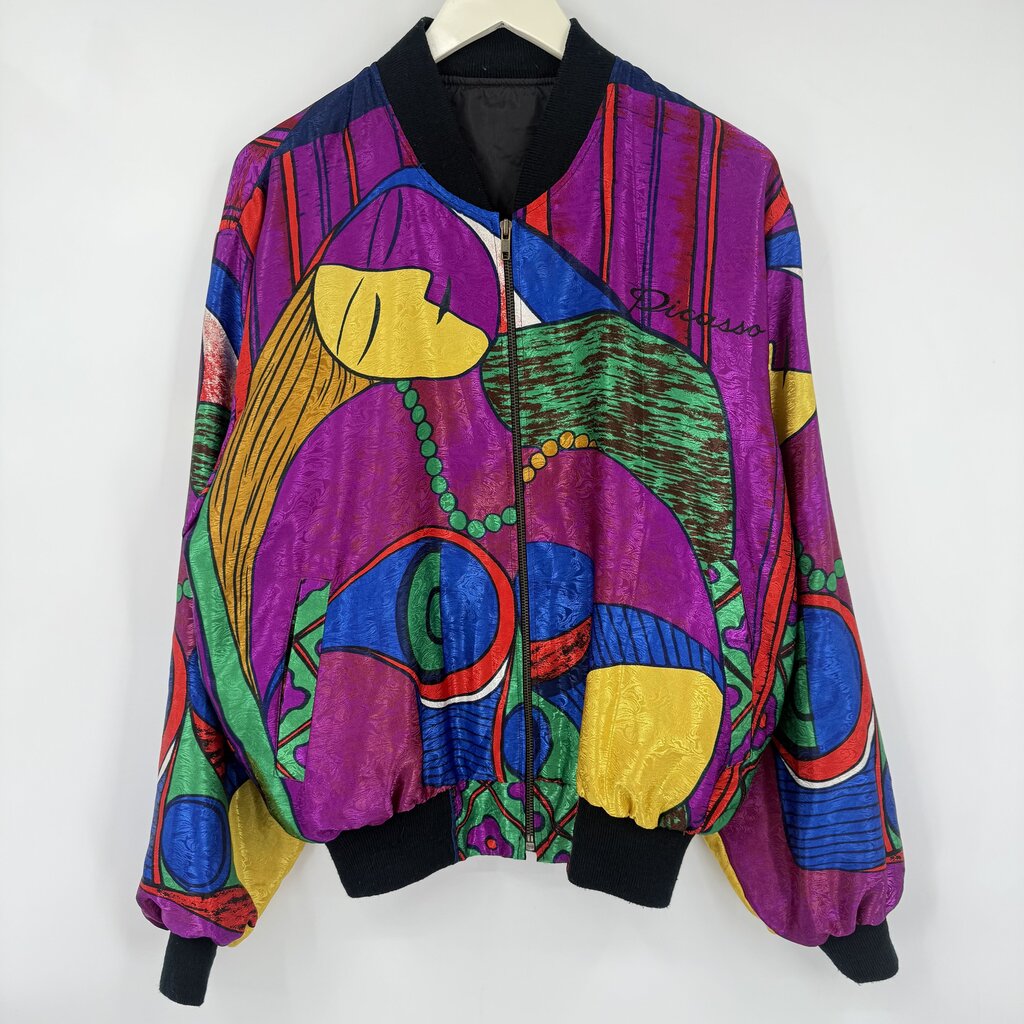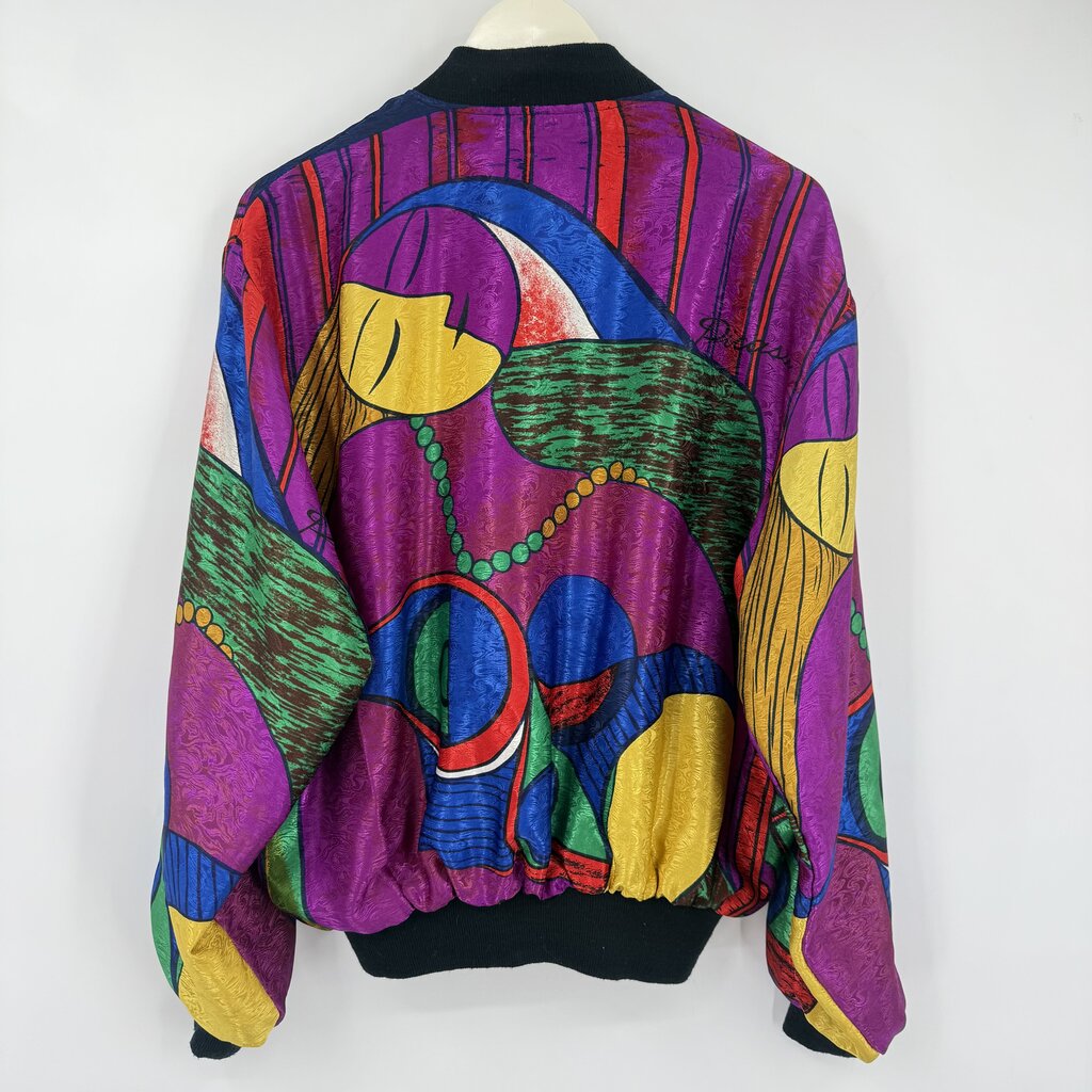 women Picasso Vintage 80s Satin Bomber Magenta Multi Jacket L