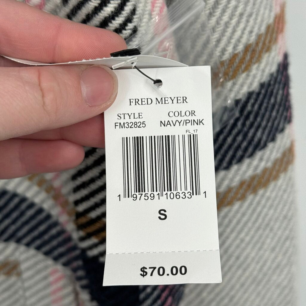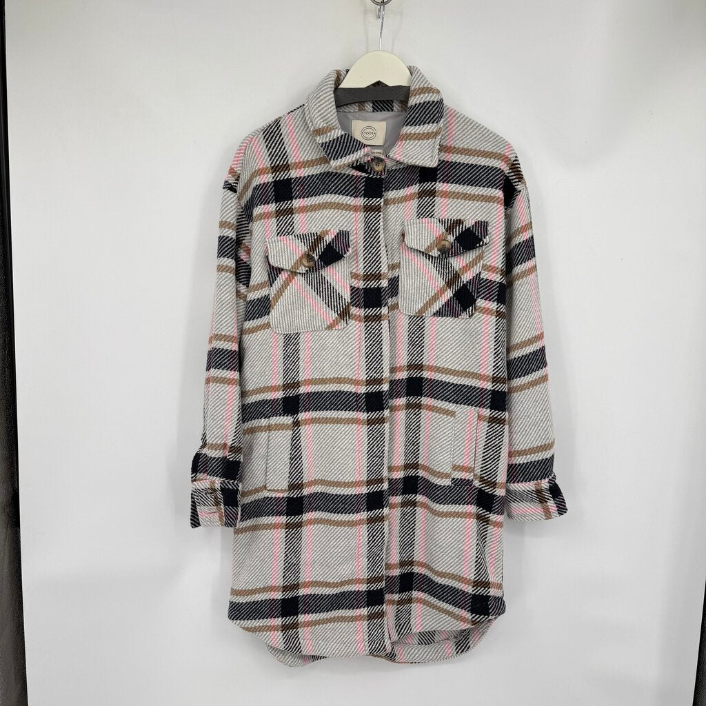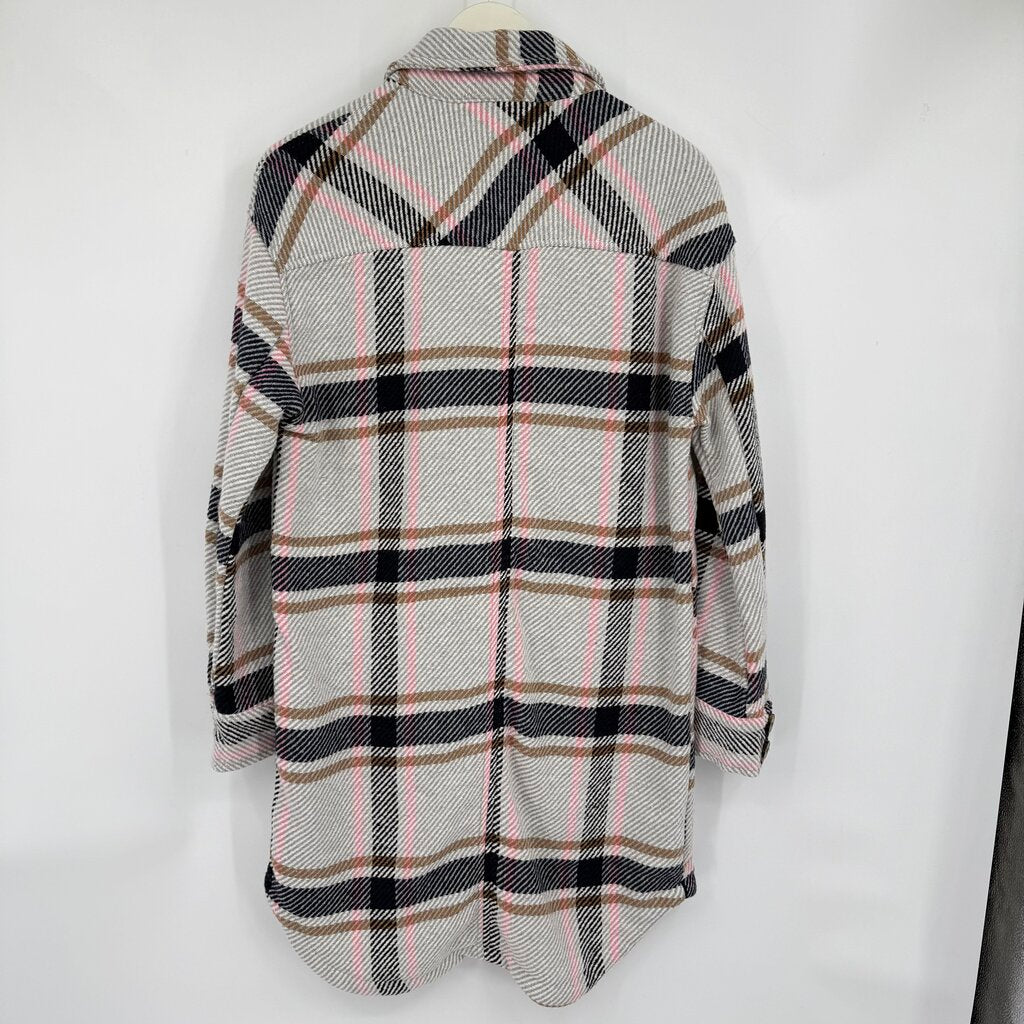women Stoosh NWT Plaid Long Shirt Jacket Gray Pink White Brown Jacket S