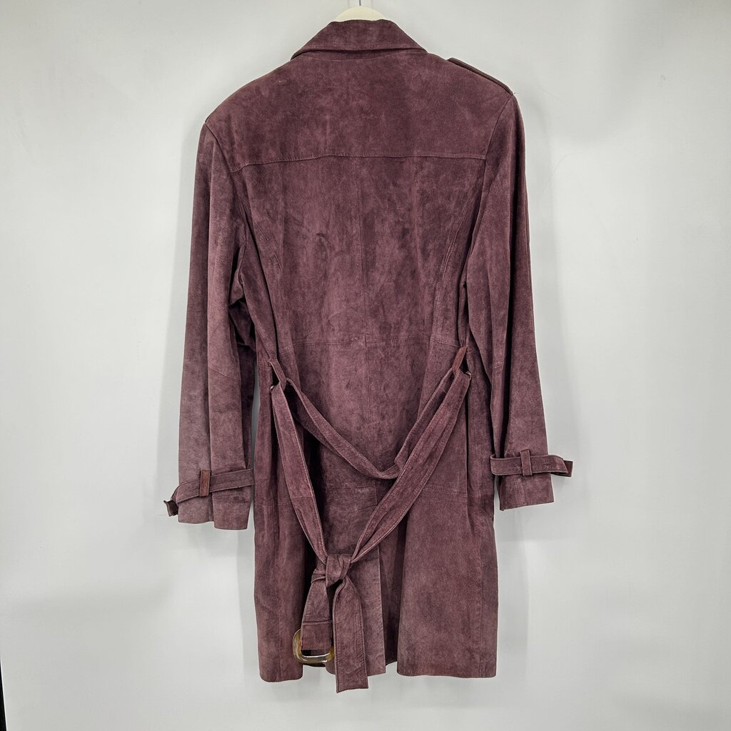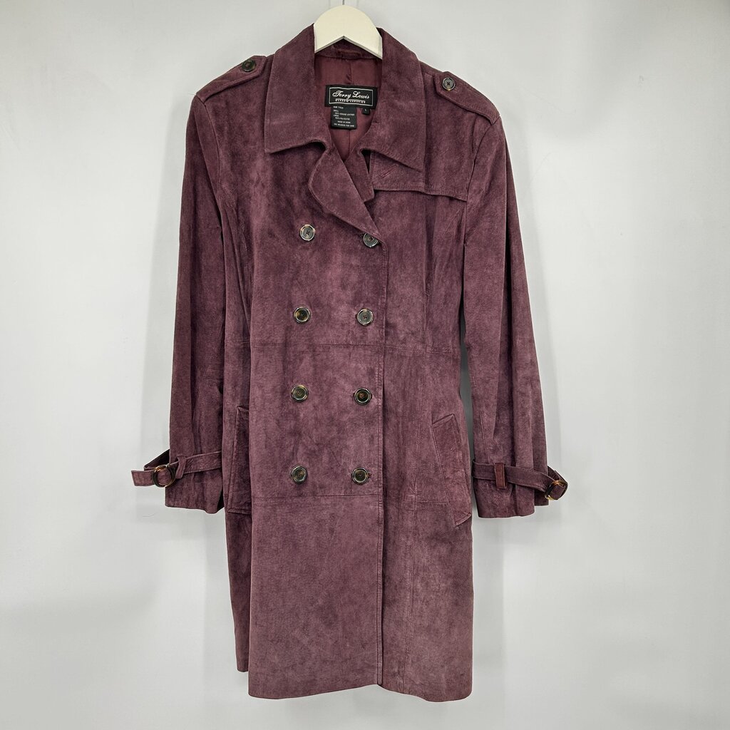 women Terry Lewis Suede Leather Trench Purple Coat L