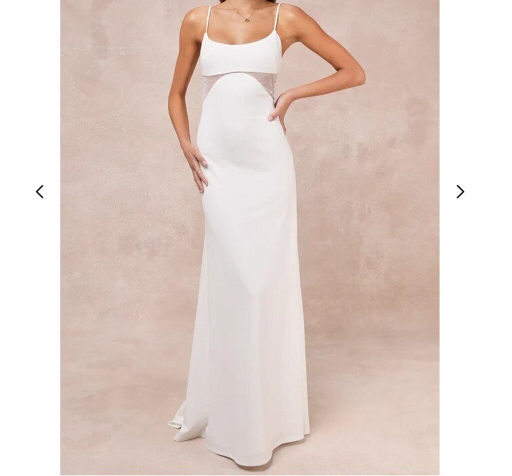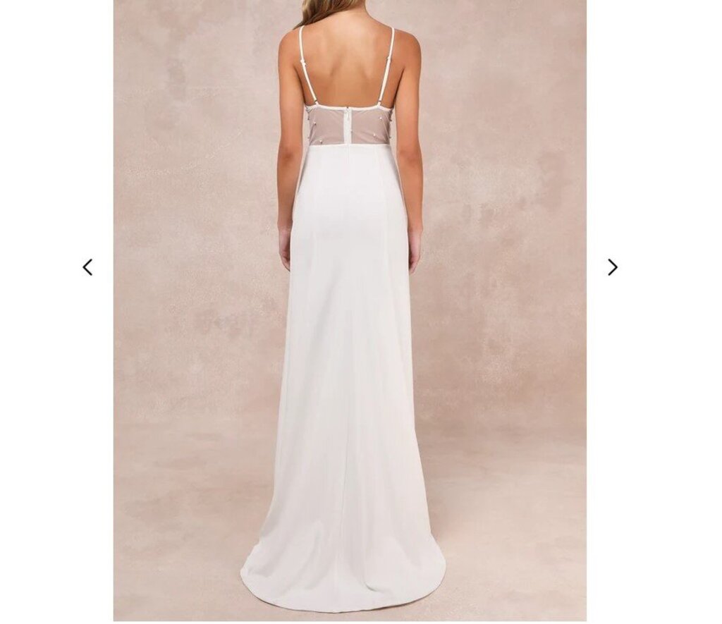 Lulu's NWT Euphoric Eloquence Sheer Mesh Pearl Sleeveless Maxi Dress