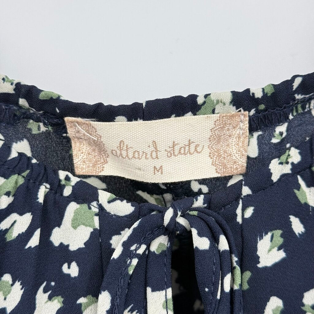 women Altar'd State Patterned Smocked Waist Navy Blue Dress M