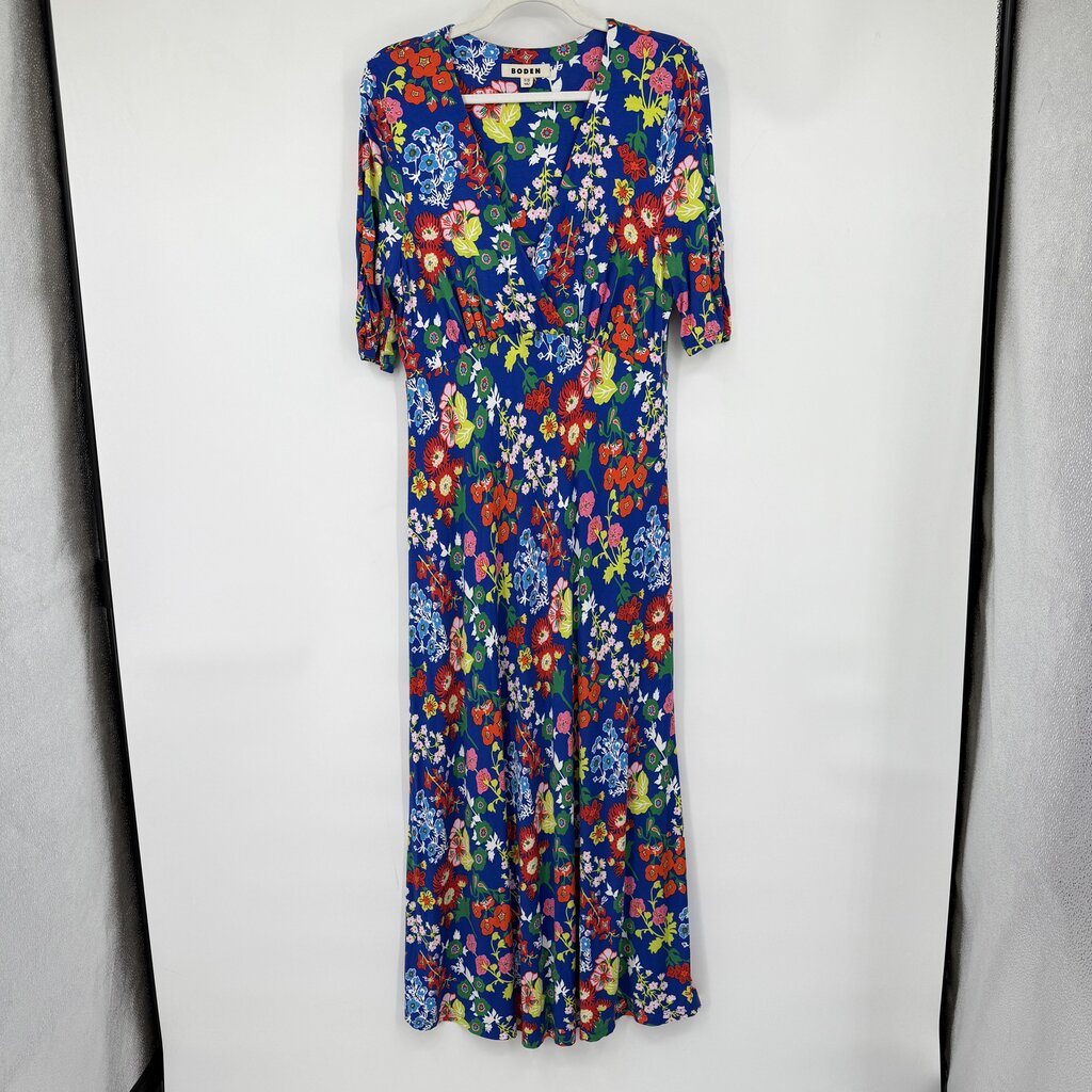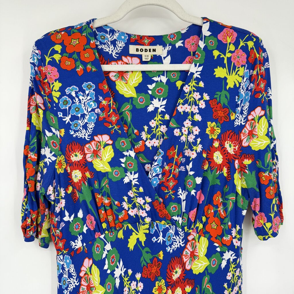 women Boden Rebecca Jersey Midi Tea Blue Wildflower Dress 12