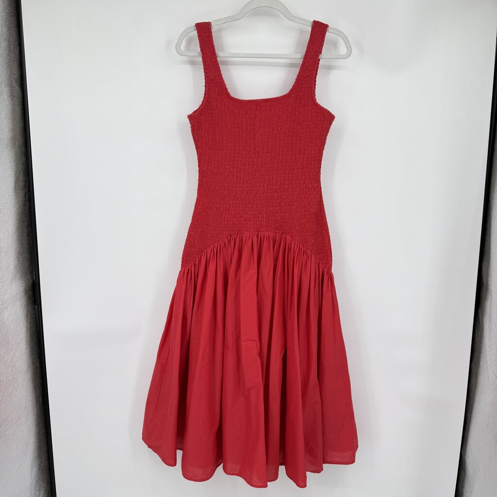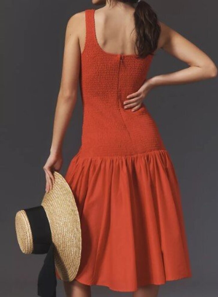 women Hutch - Anthro NWT Sleeveless Smocked Drop-Waist Midi Dress Hibiscus Red Dress M