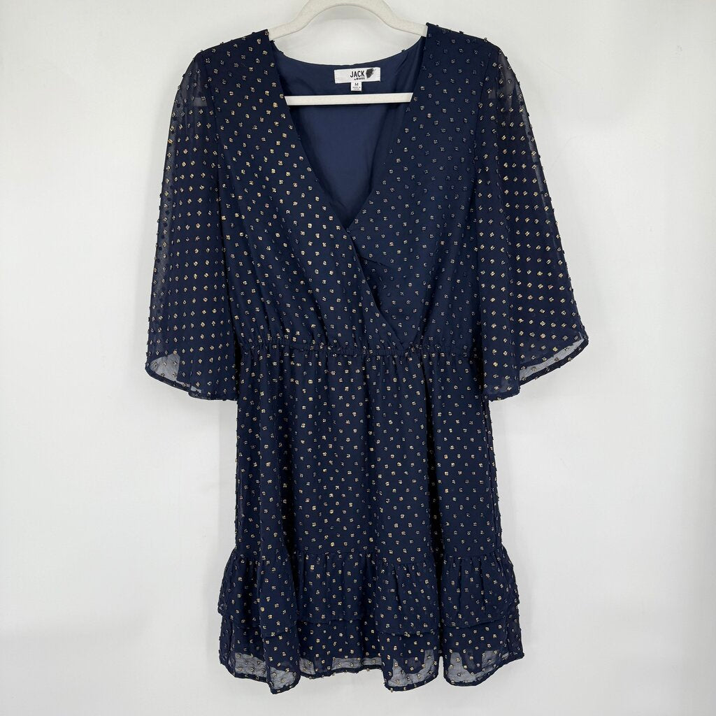 women Jack by BB Dakota Gold Swiss Dot Midnight Blue Dress M