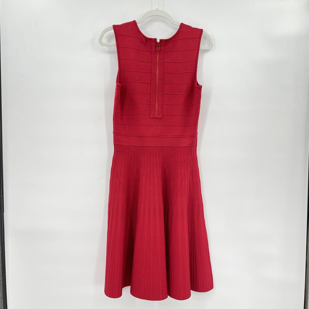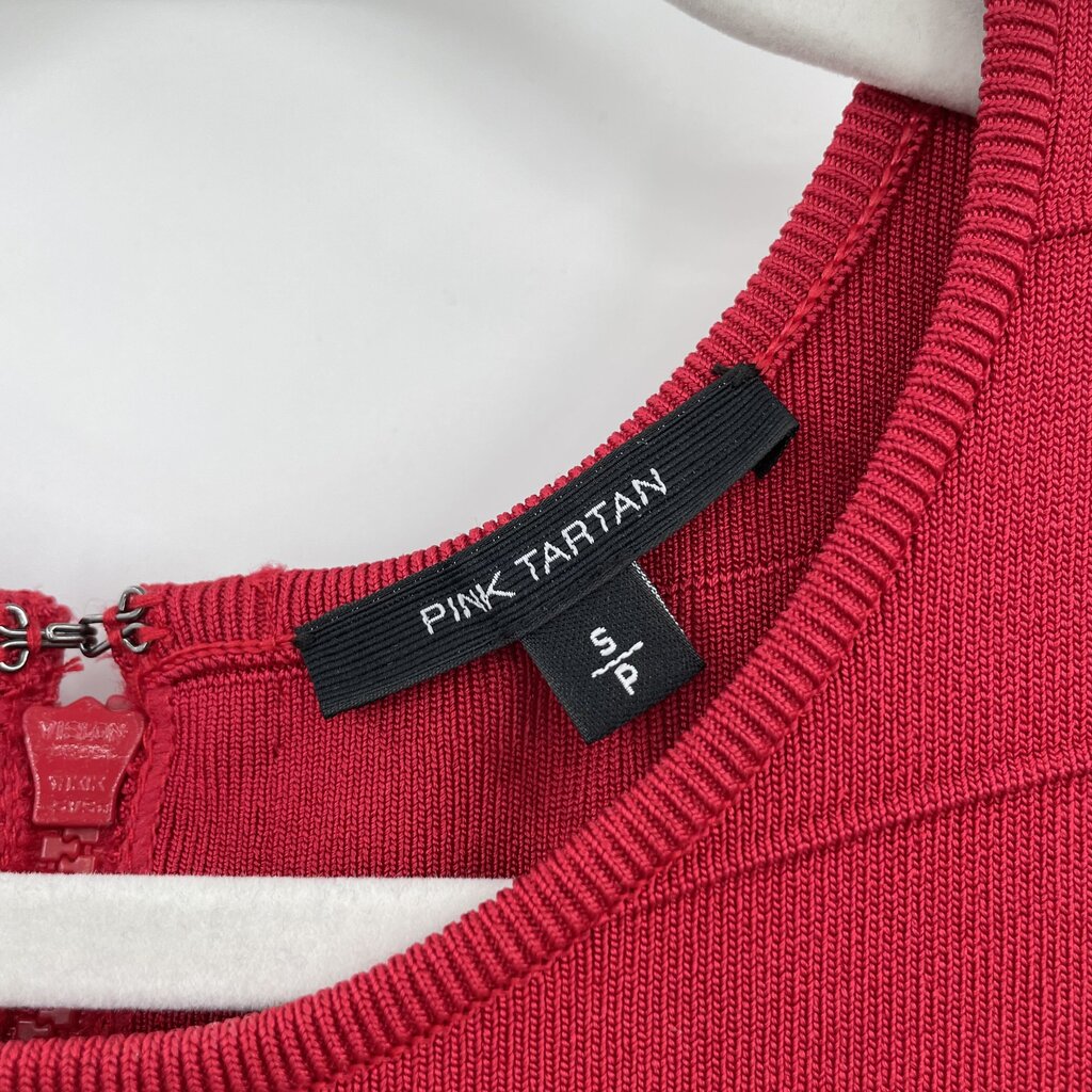 women Pink Tartan Sleeveless Textured Knit A-Line Red Dress S