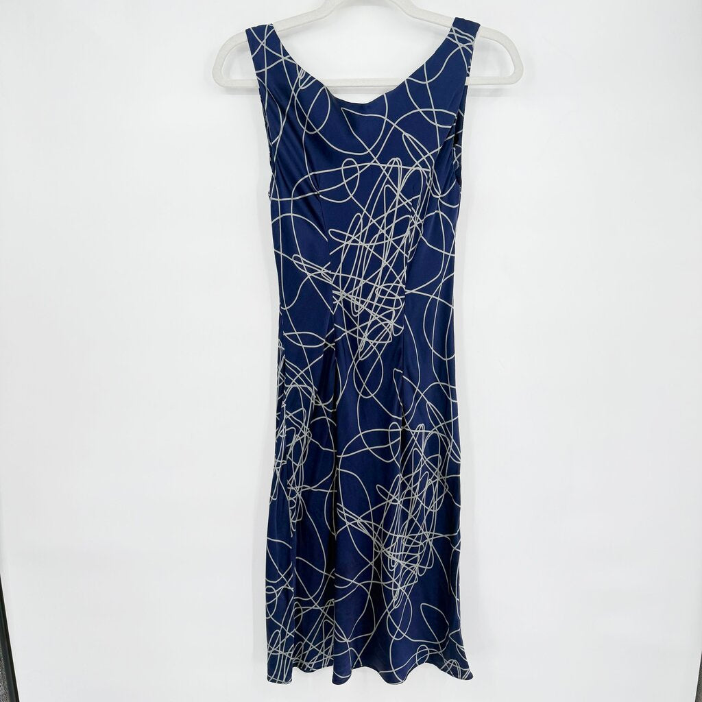 women Tocca Silk Line Print Navy Blue Dress S