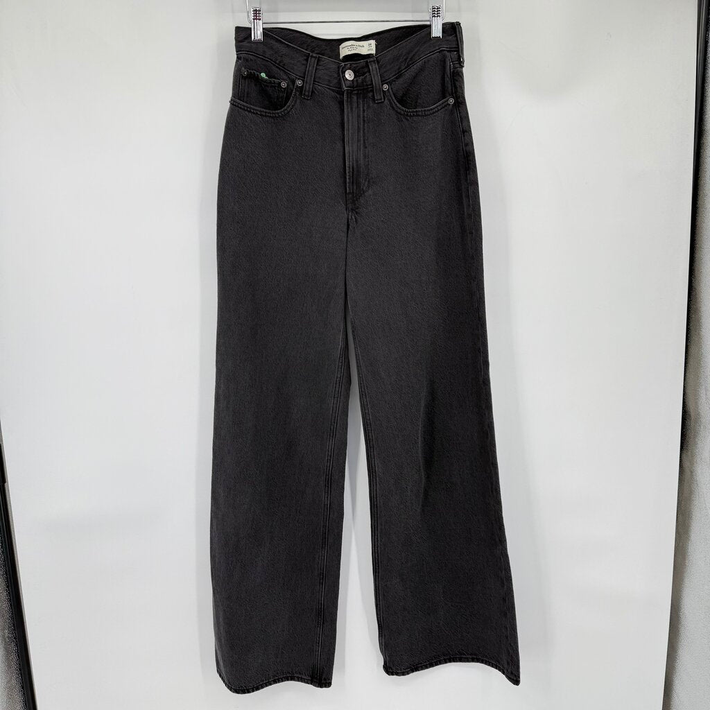 women Abercrombie & Fitch Wide Leg High Rise Aged Black Jeans 26L