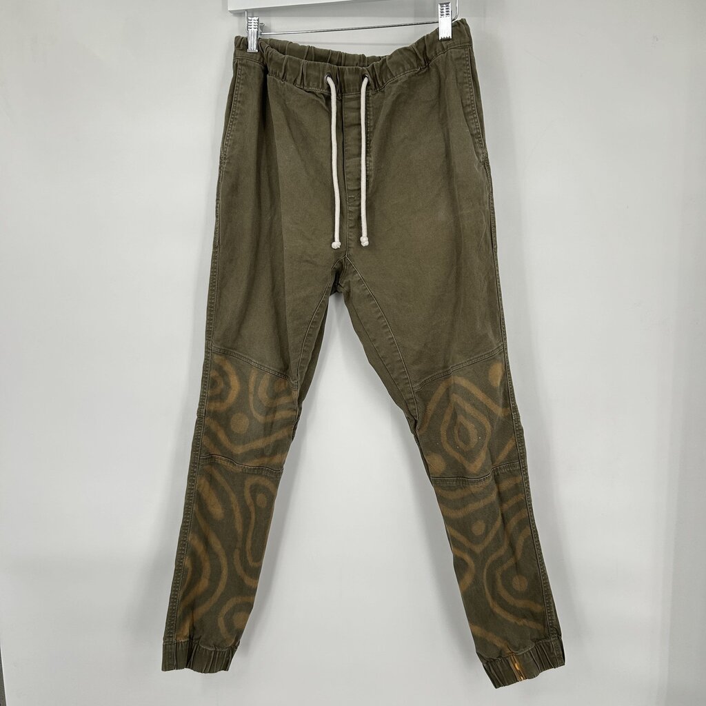 men H&M Hand Bleached Joggers Olive Green Pants 30