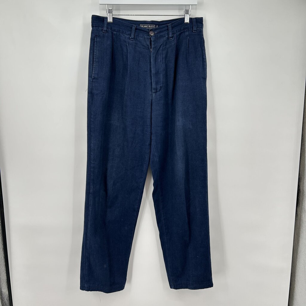 women Blanc Bleu Relaxed Tapered Fit Trousers Dark Blue Pants EU42/US31