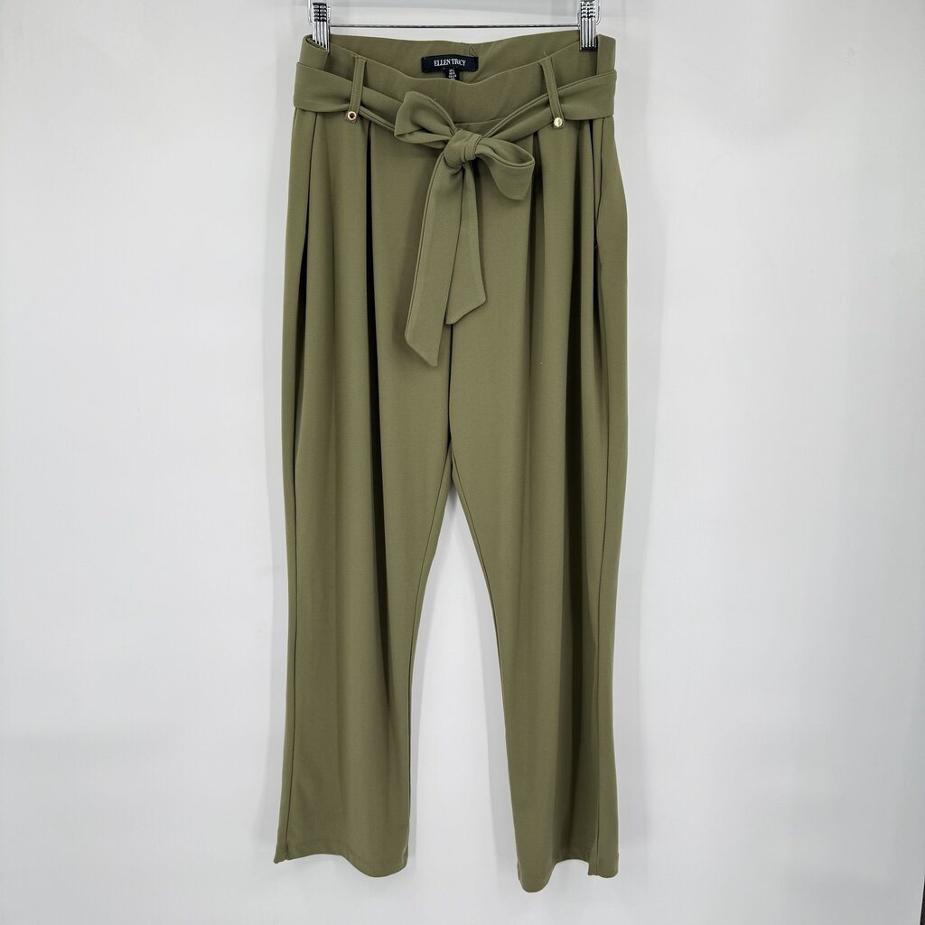 women Ellen Tracy Belted Trousers Olive Green Pants L