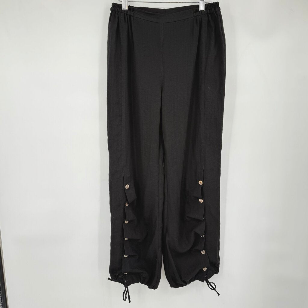 women Fridaze Ripple Tide Linen Pants Ankle Black Pants S