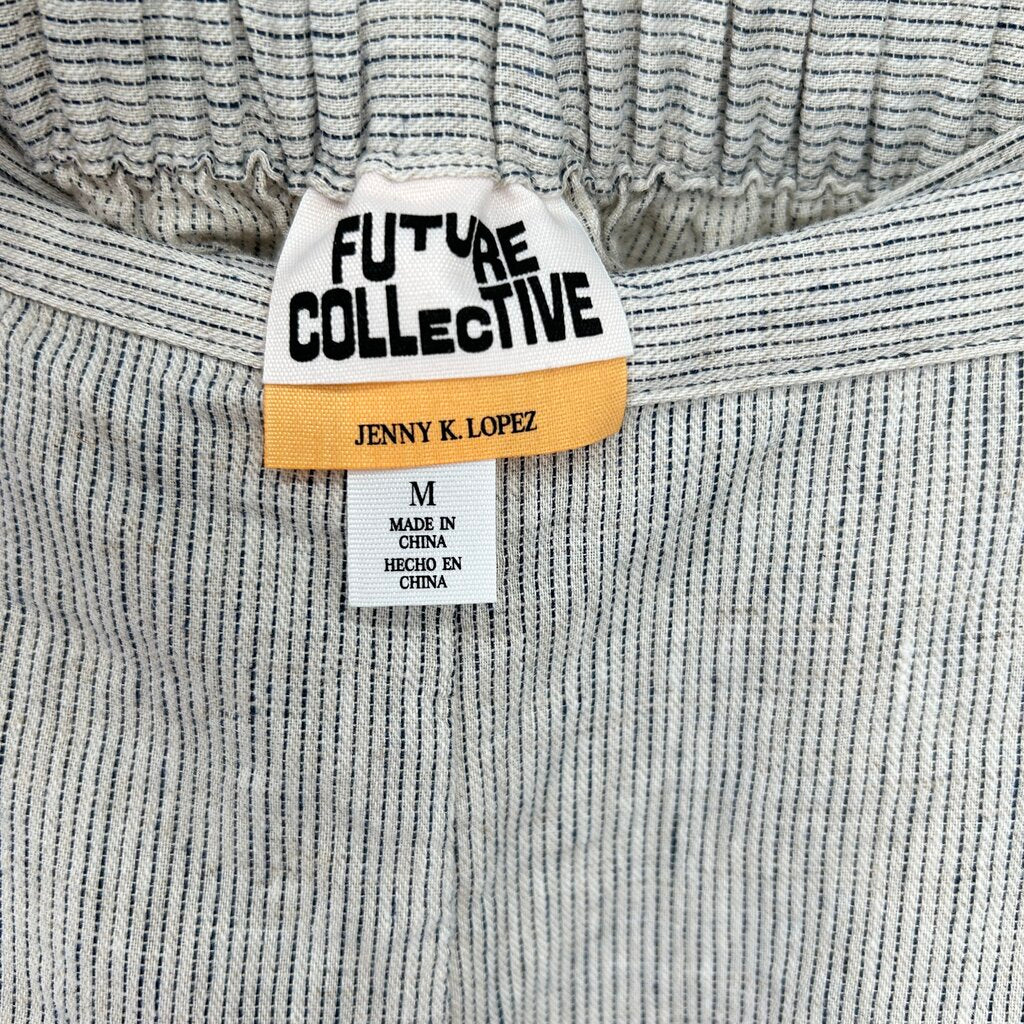 women Future Collective Linen Blend Striped Ankle Tie White Black Pants M