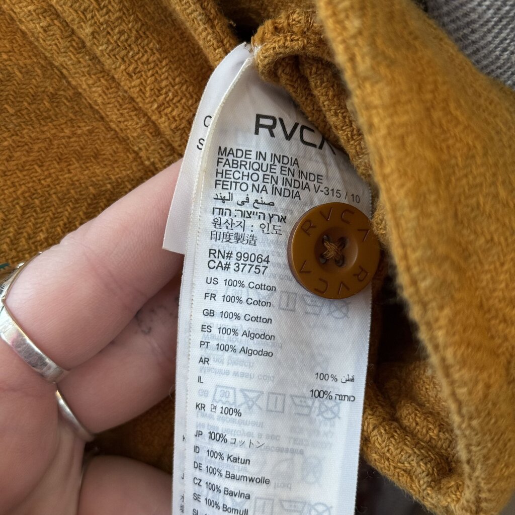RVCA Scout Striped Trouser Orange Cathay Spice 28/6. Set a throwback tone with the RVCA Scout Striped Trouser, featuring menswear lines and a tonal herringbone stripe. Bringing back the front pleat, the modern trouser features a tapered and cuffed leg, mid rise cut and classic pocketing.