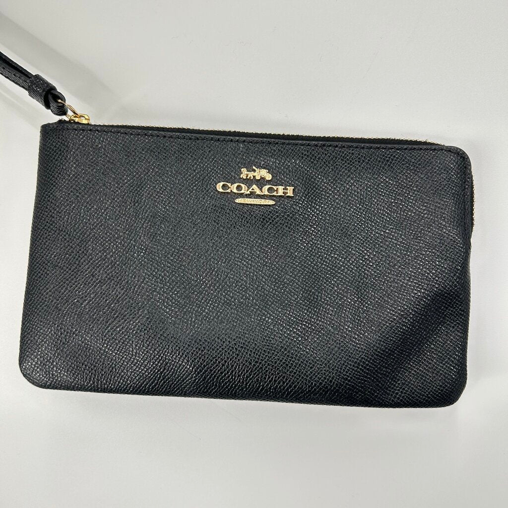women Coach Corner Zip Wristlet Black Purse 7.5"x4.5"