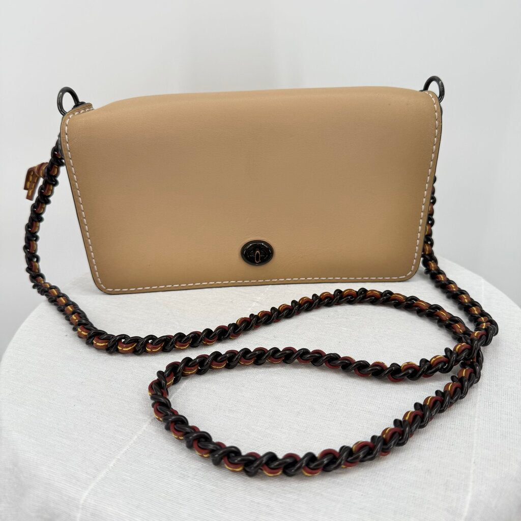 women Coach Dinky Glovetanned Leather Crossbody Tan Beige Purse