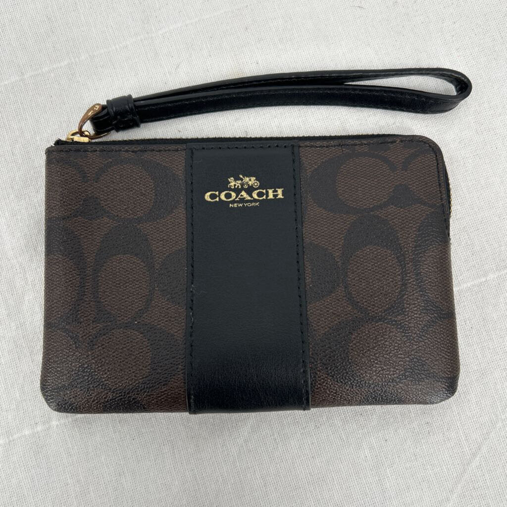 women Coach Mini Wristlet Card Pouch Brown Black Purse 6" x 3.75"