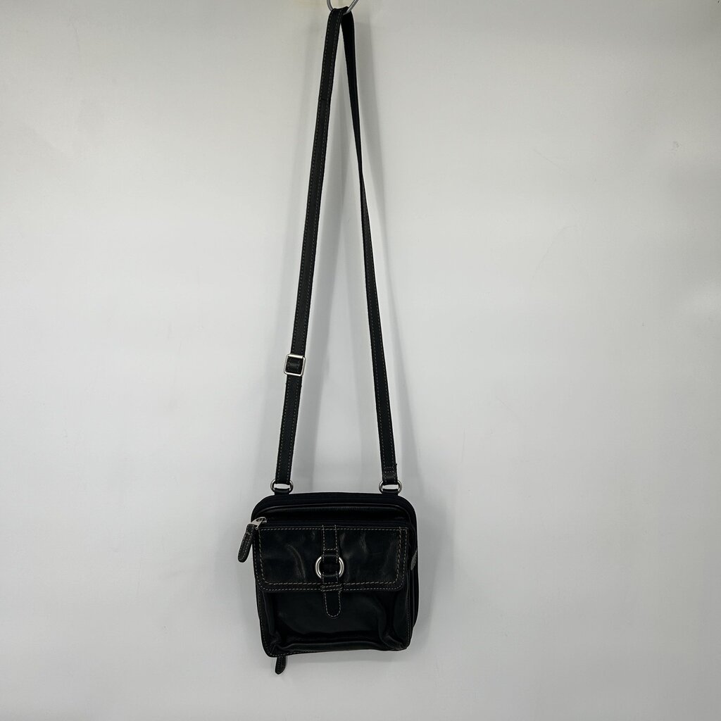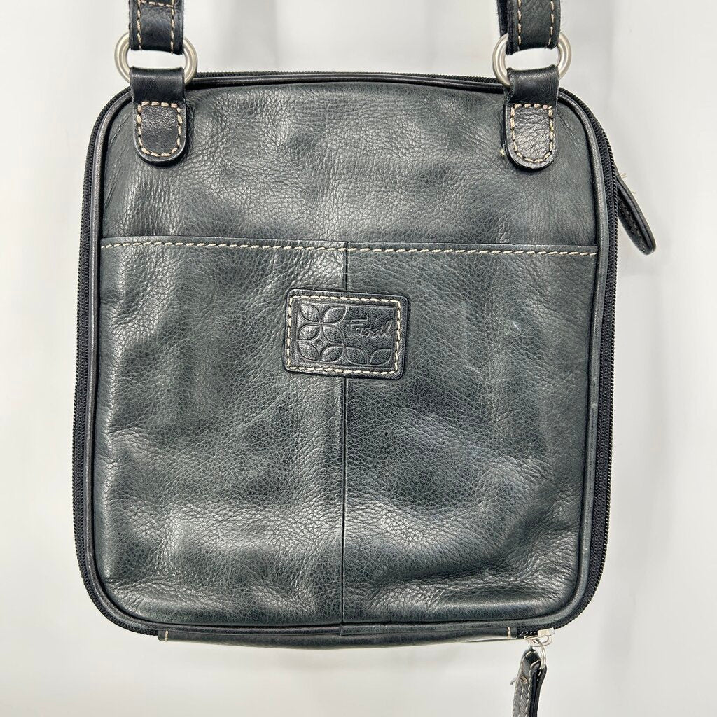 women Fossil Square Leather Crossbody Bkack Purse
