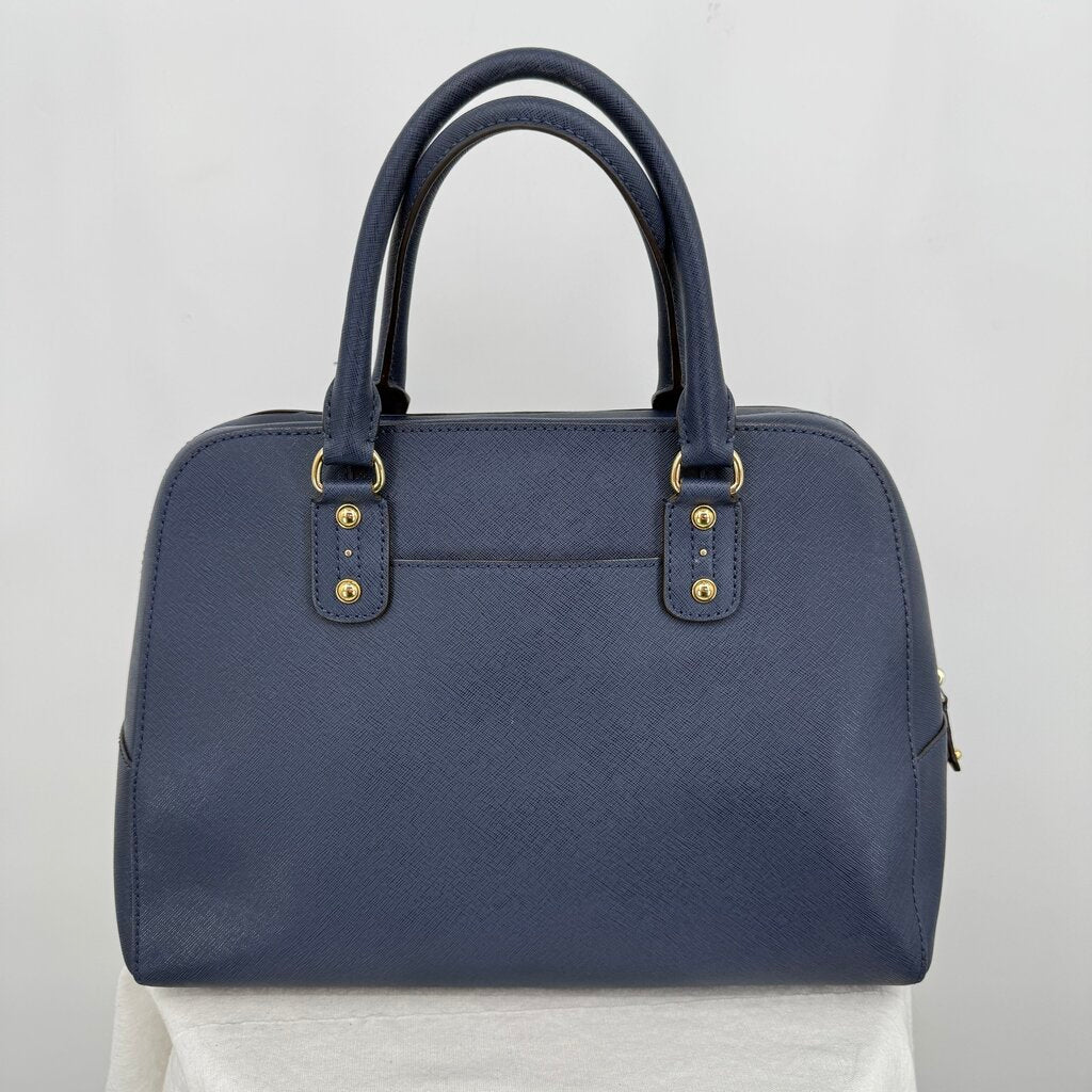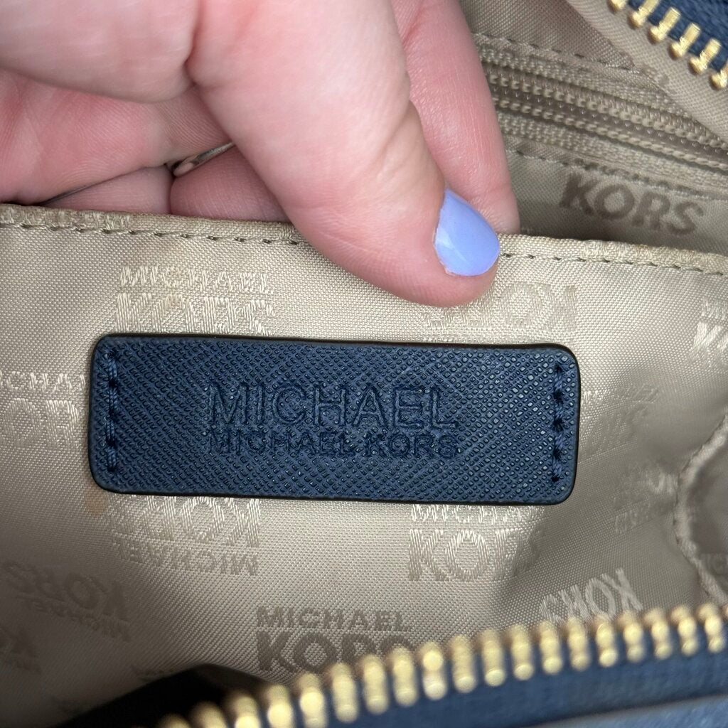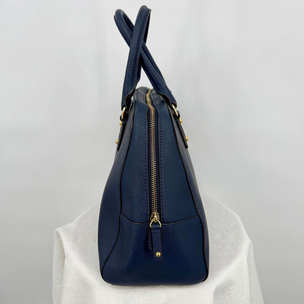 women Michael Kors Saffiano Leather Shoulder Bag Navy Blue Purse 14" x 6" x 10"