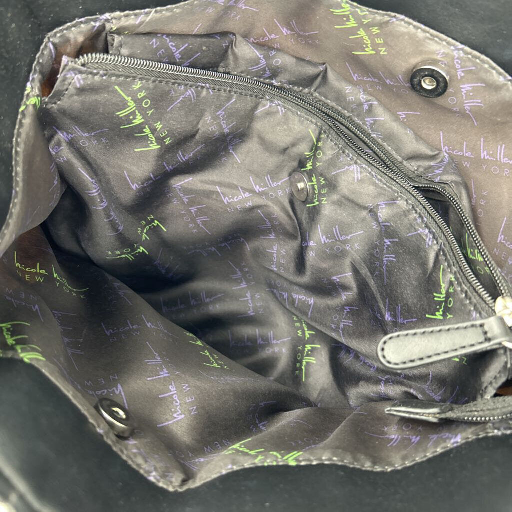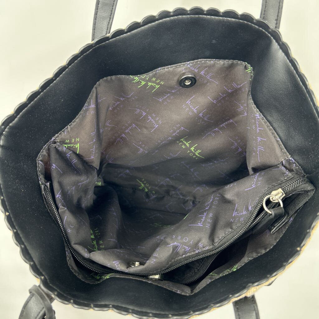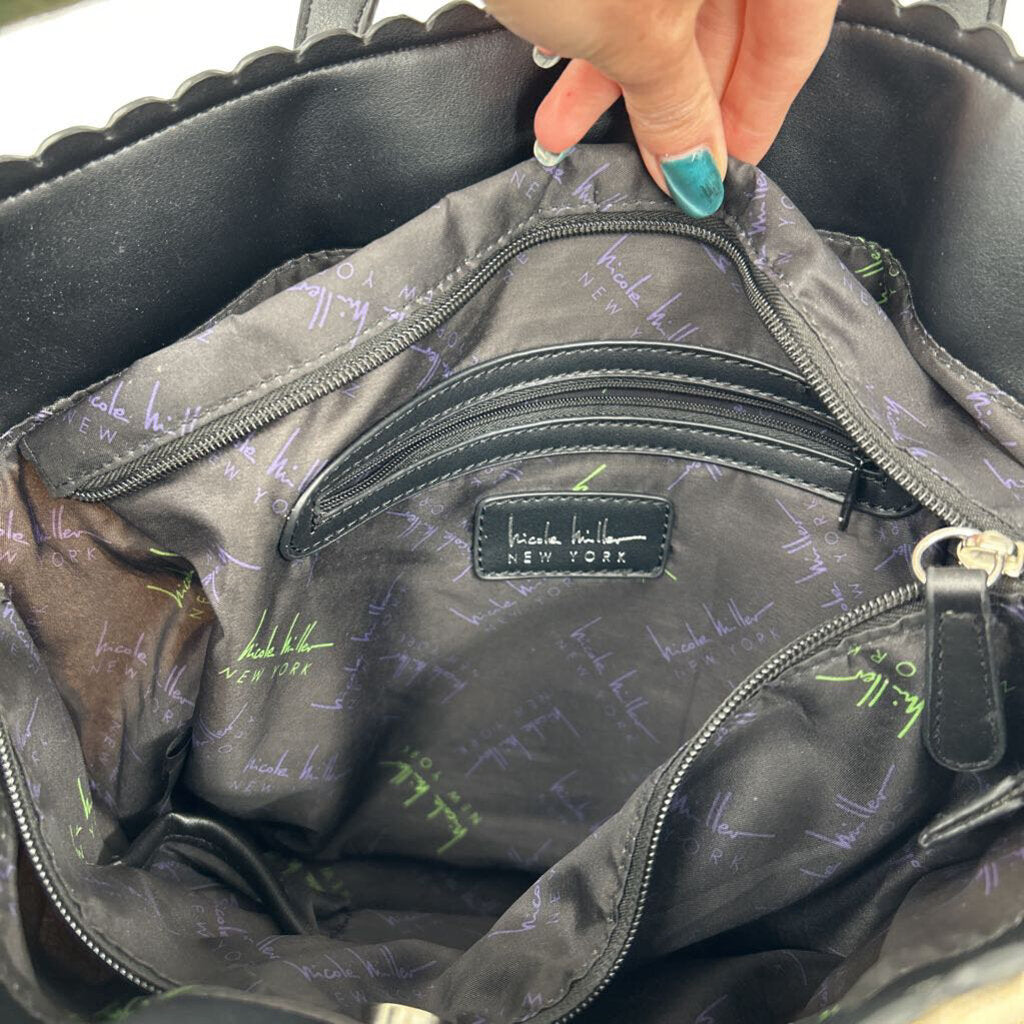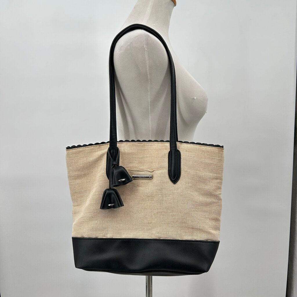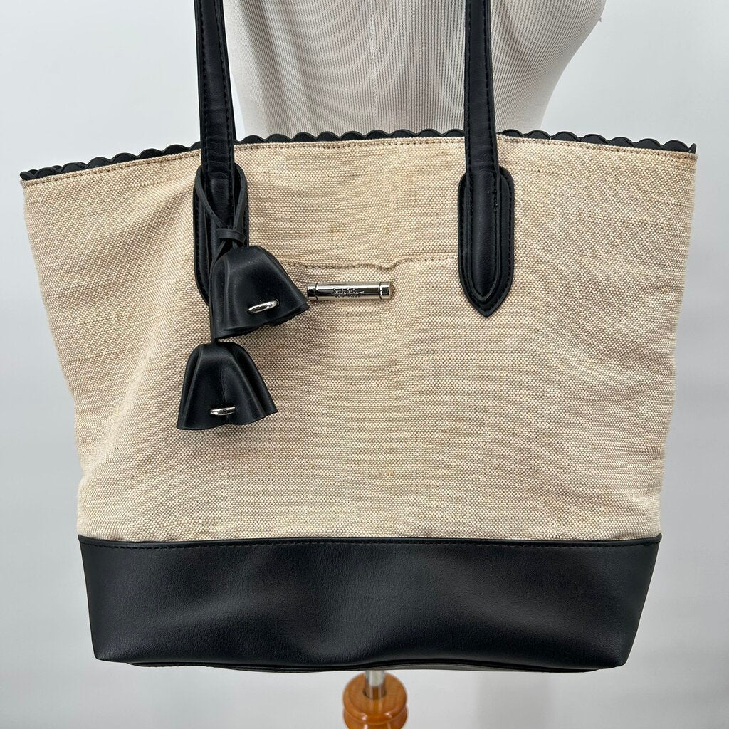 women Nicole Miller Scallop Trim Tote Tan and Black Purse