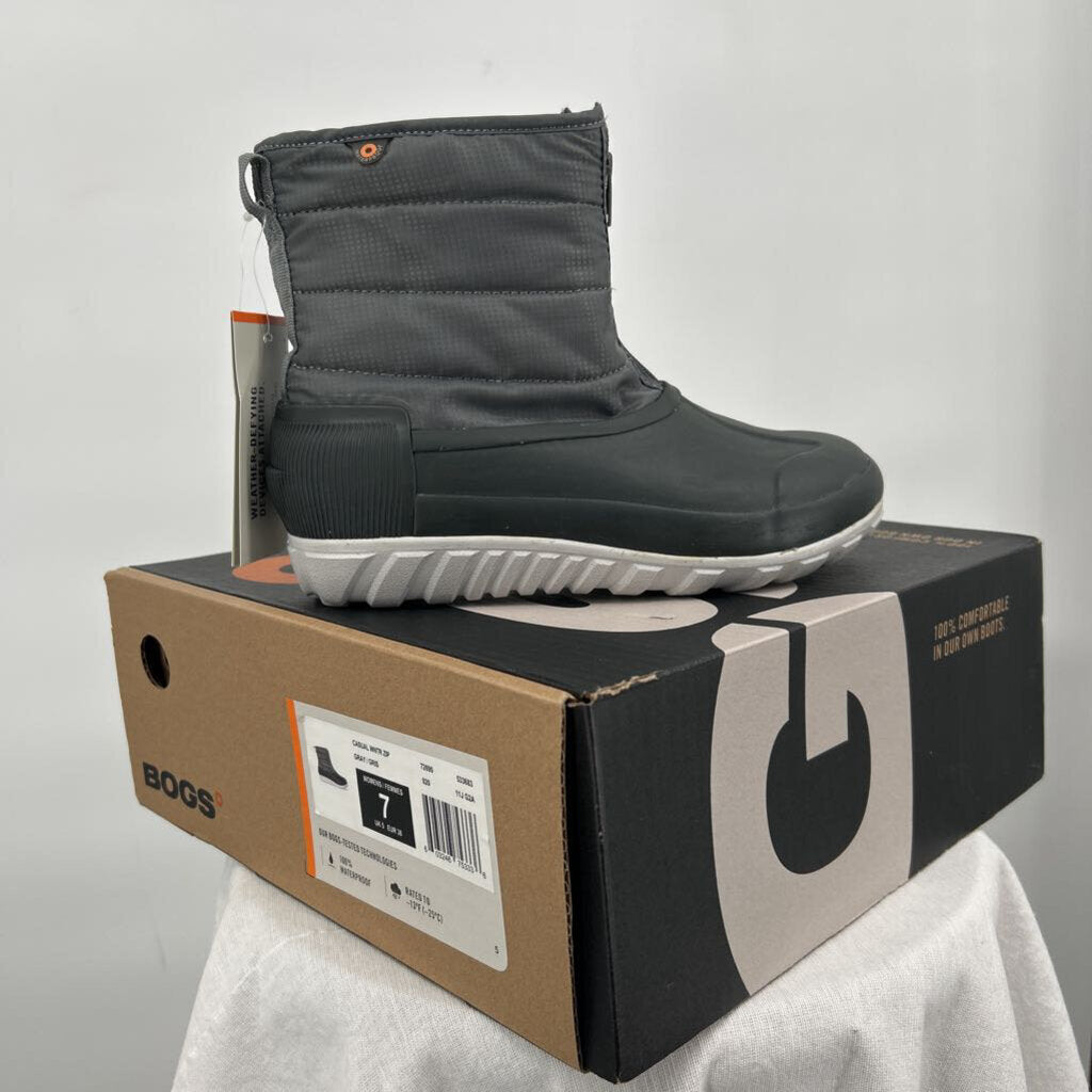 women Bogs NWT Casual Winter Zip Boots Black Gray Shoes 7