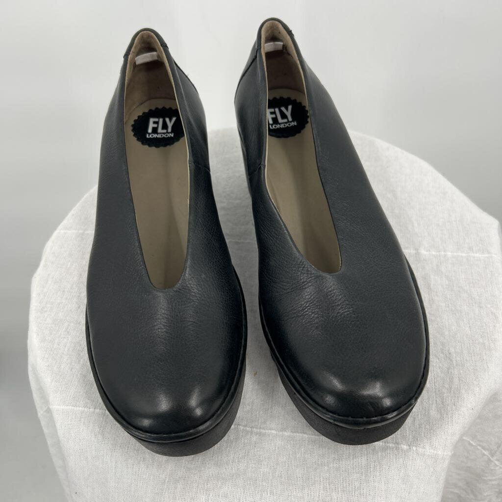 women Fly London Yaz Wedge Heel Black Shoes 38/7
