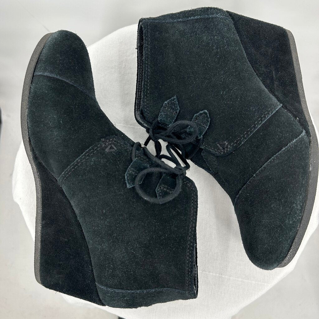 women Toms Suede Lace Up Wedges Black Shoes 9
