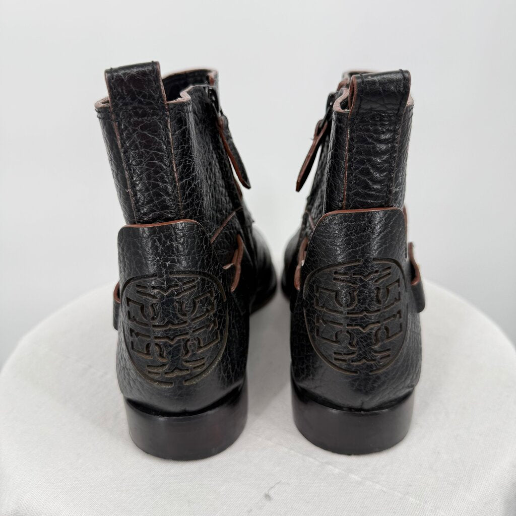 women Tory Burch Derby Mid Riding Boots Black Shoes 7.5