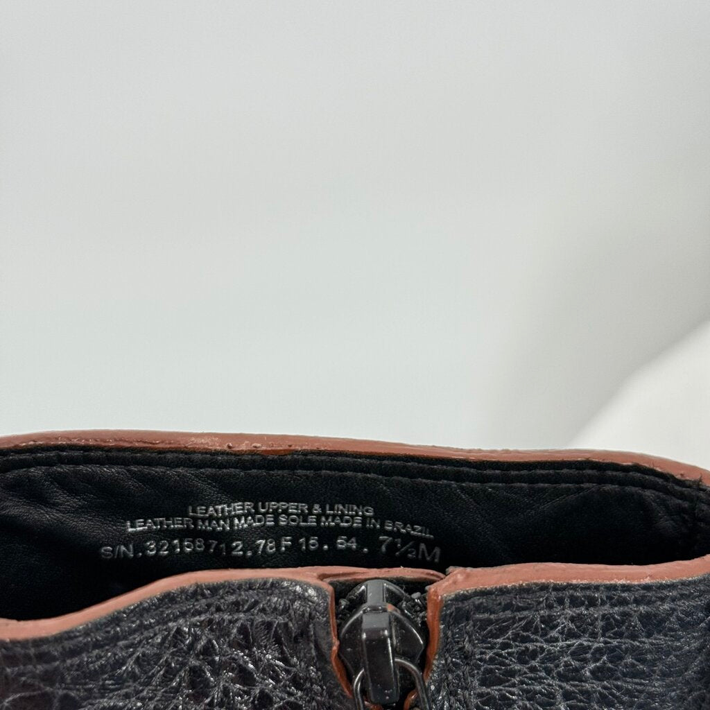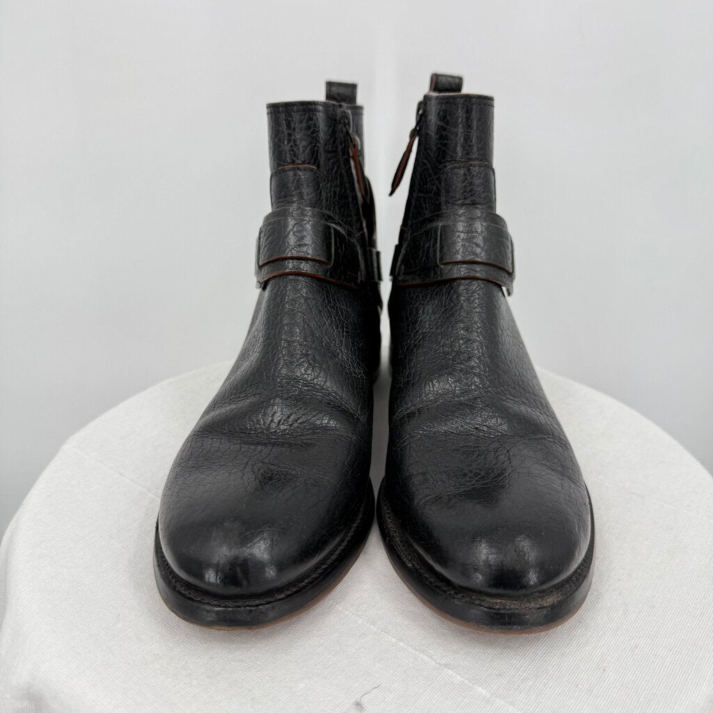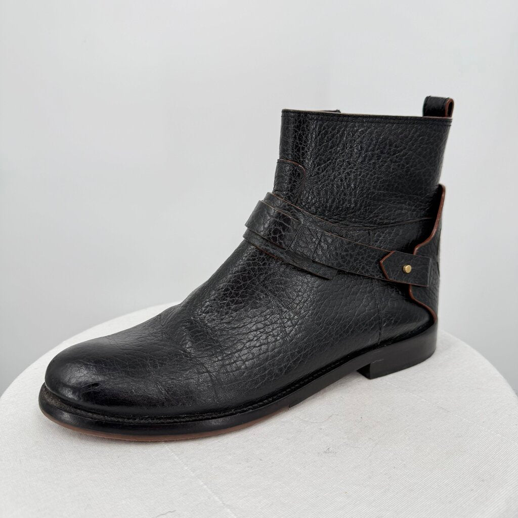 Very good used condition, light wear as seen in photos. Riding-inspired straps and a prominent logo cutout lend classic appeal to a wear-with-everything ankle boot crafted from rich pebbled leather edged in a deep cognac hue.