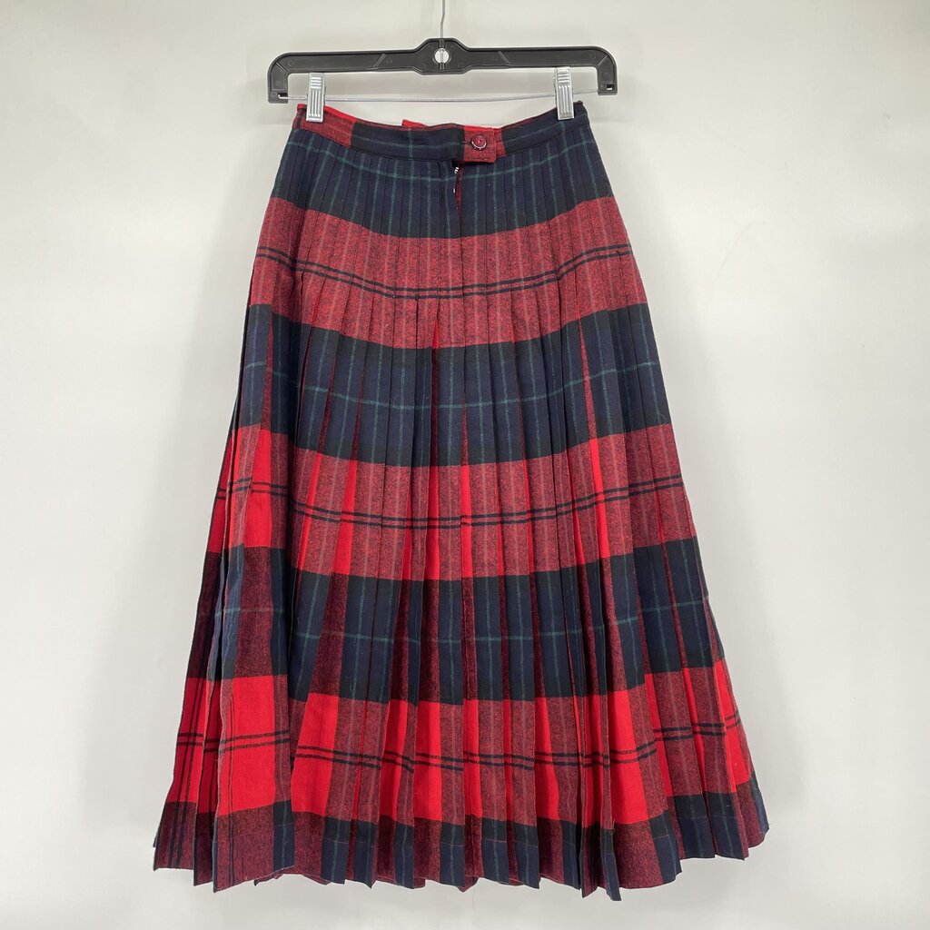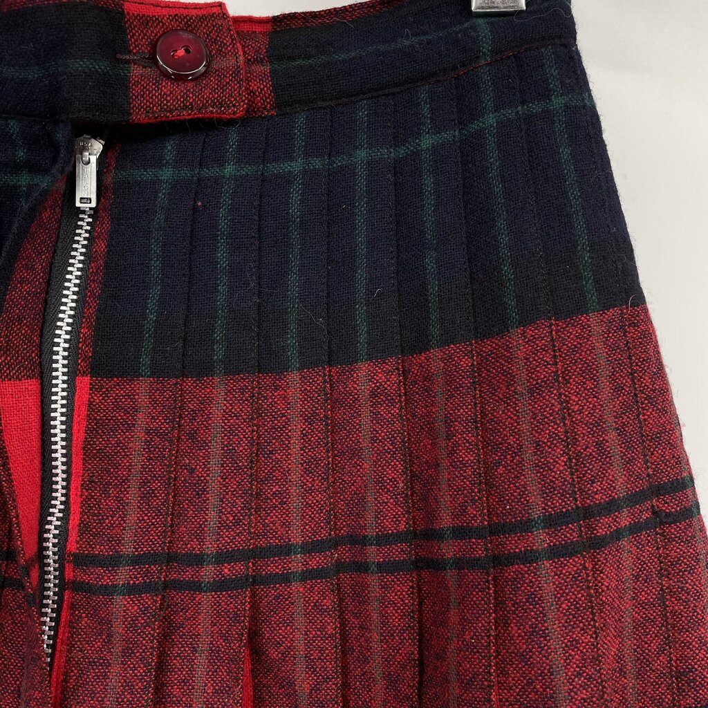 women Reversible Vintage Plaid Pleated Wool Red Green Skirt XXS