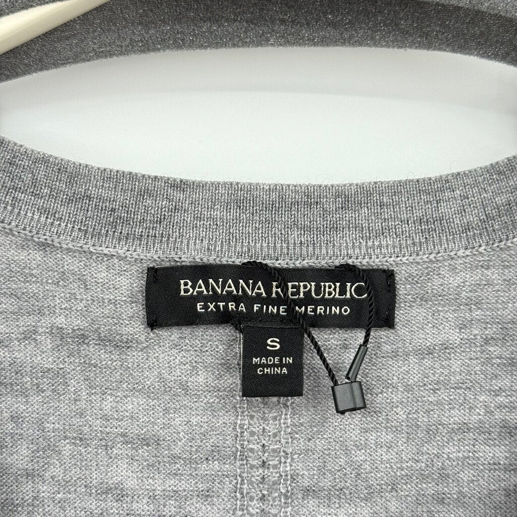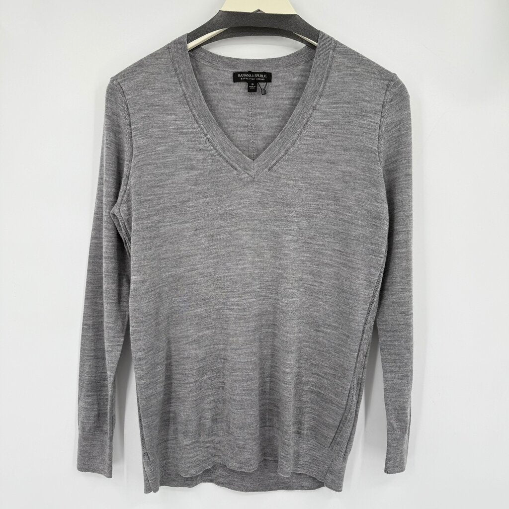 women Banana Republic NWOT Fine Gauge Merino Wool V-Neck Gray Sweater S