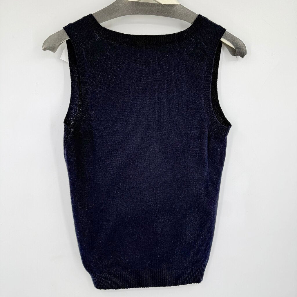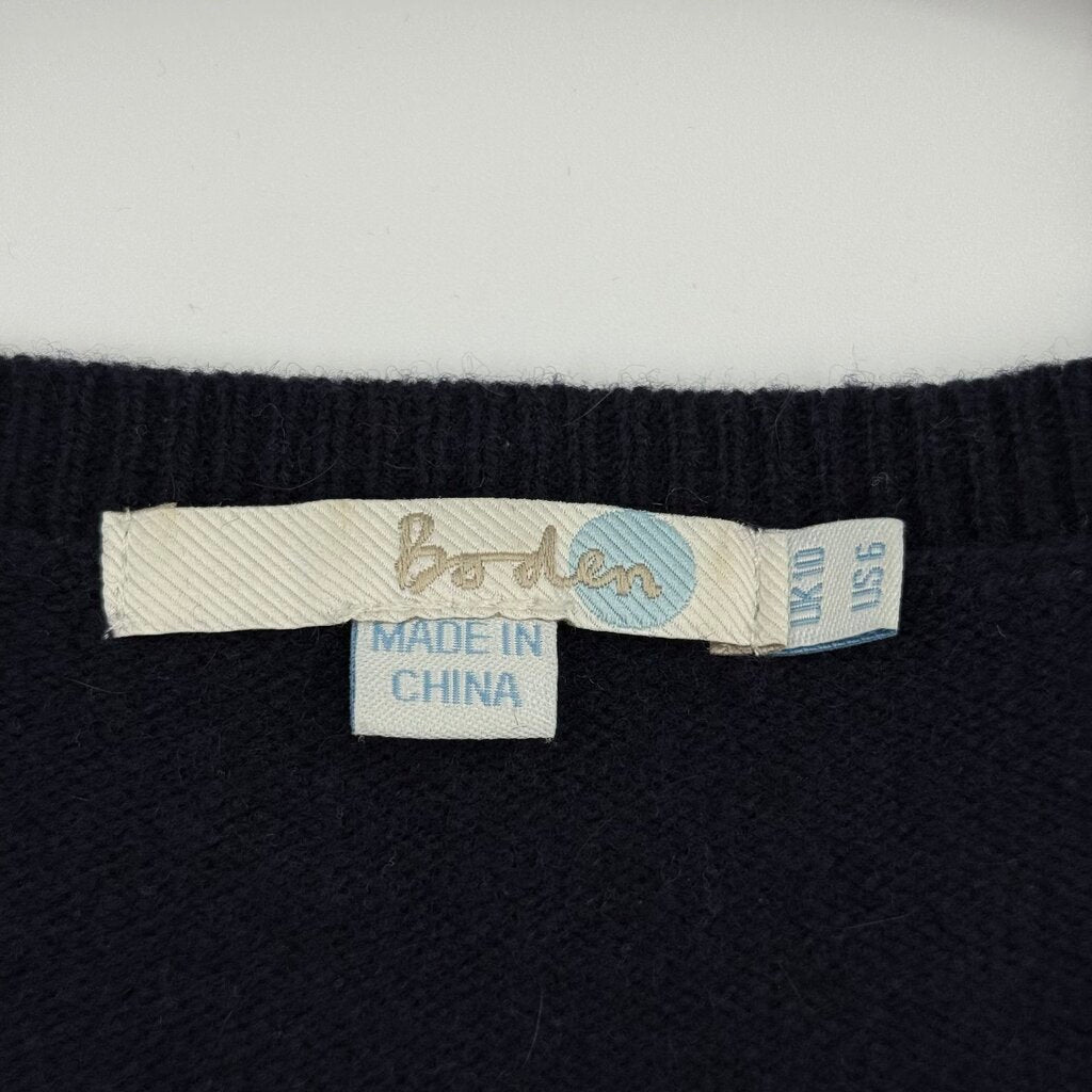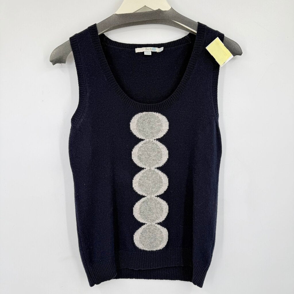 women Boden Wool Polka Dot Design Vest Navy Blue Gray Sweater 6