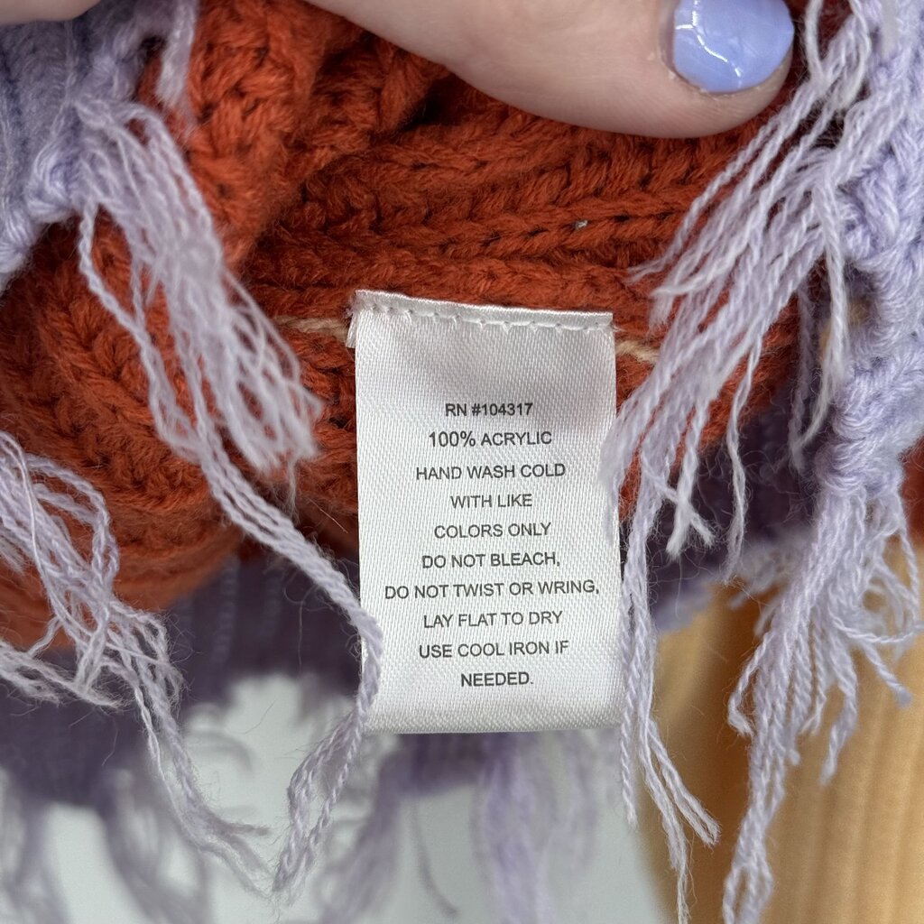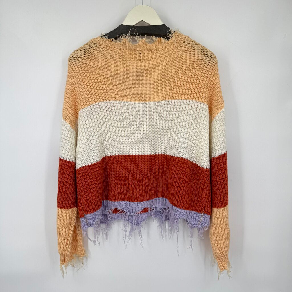 women Derek Heart Distressed Striped Orange Cream Sweater M