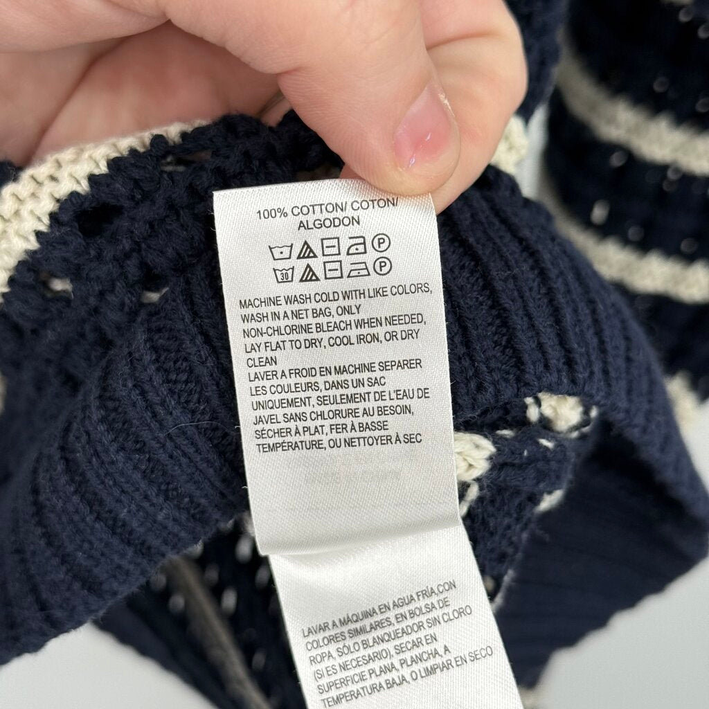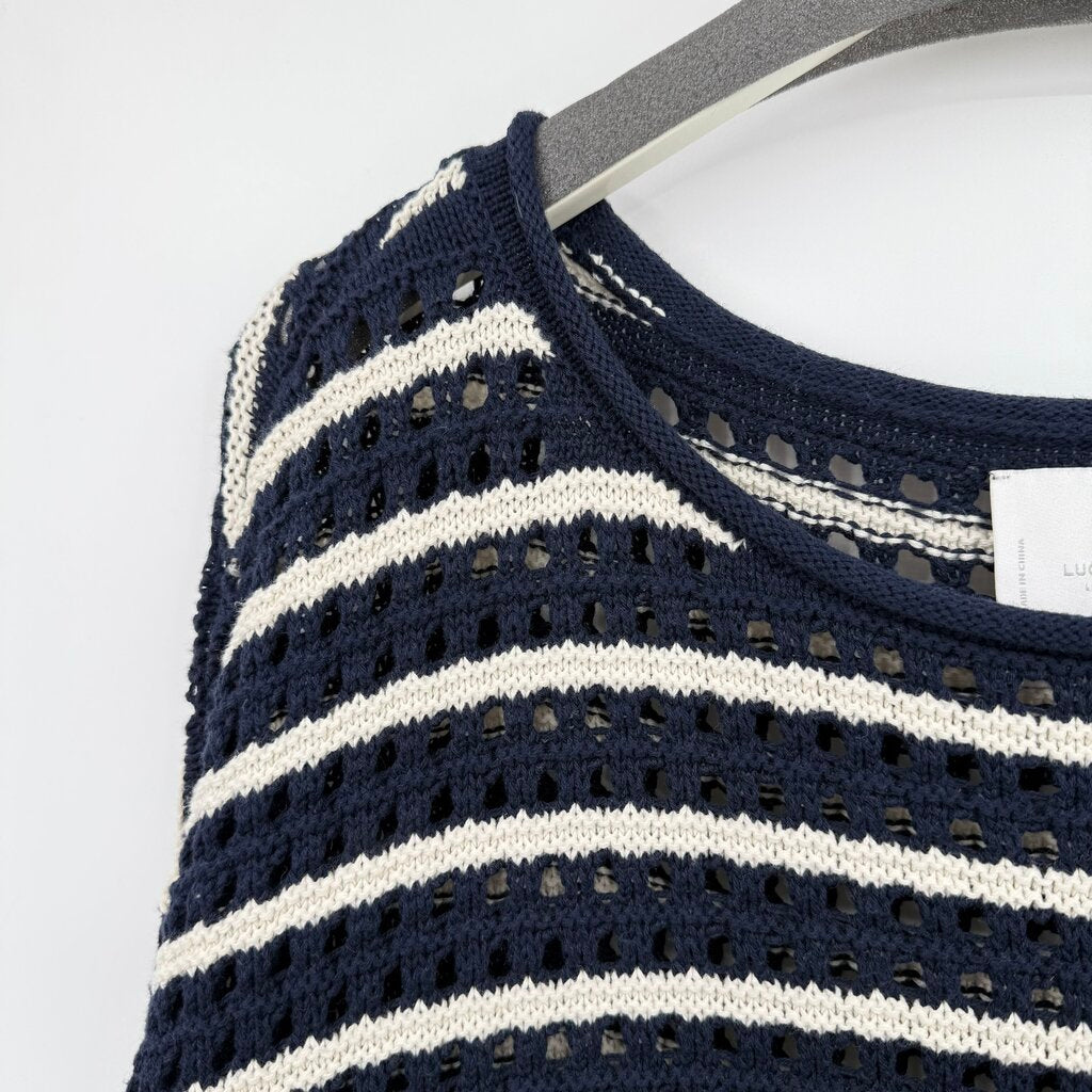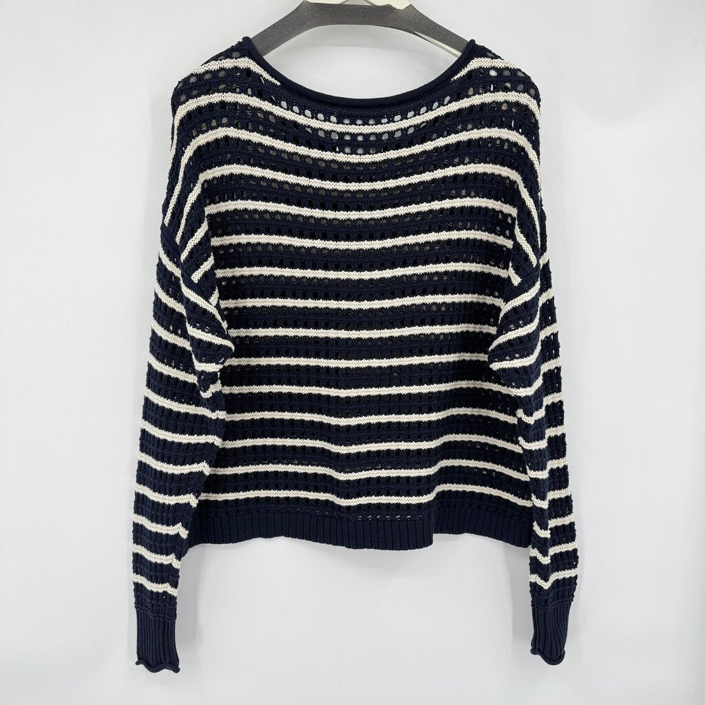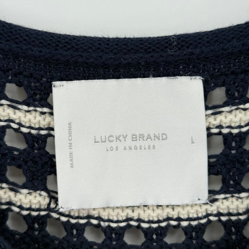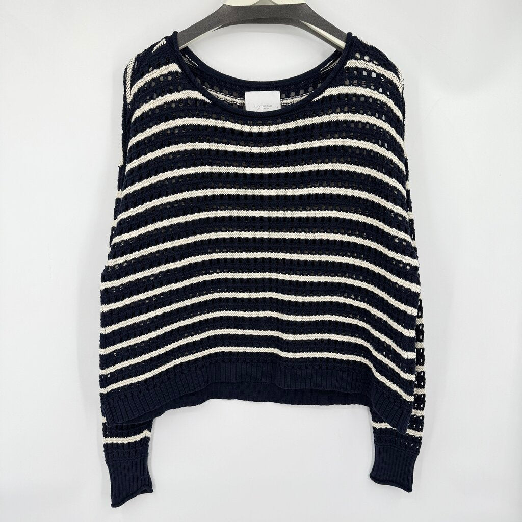 women Lucky Brand Striped Open Knit Navy and White Sweater L