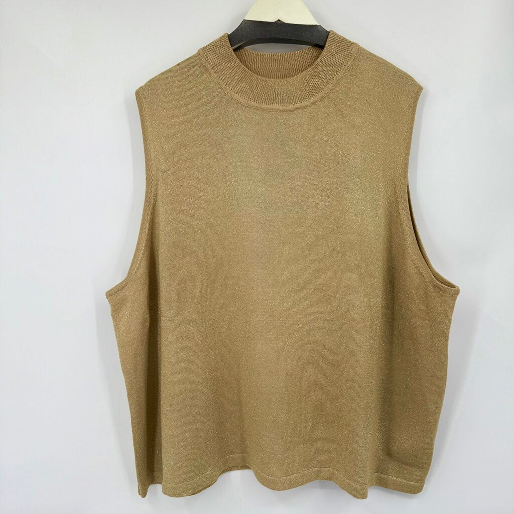 women Maggie Barnes Sleeveless Metallic Mock Neck Gold Sweater 4X