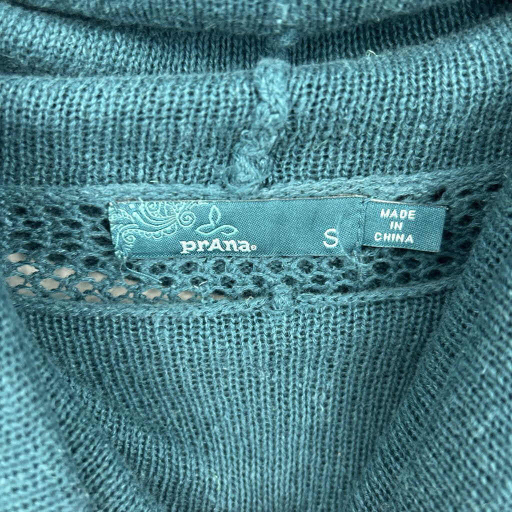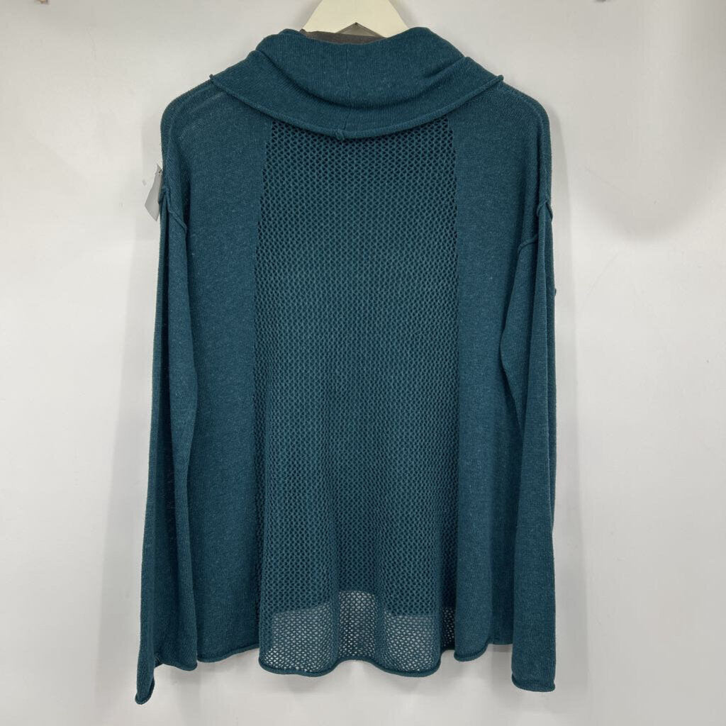 women Prana Fishnet Back Cowl Neck Teal Sweater S