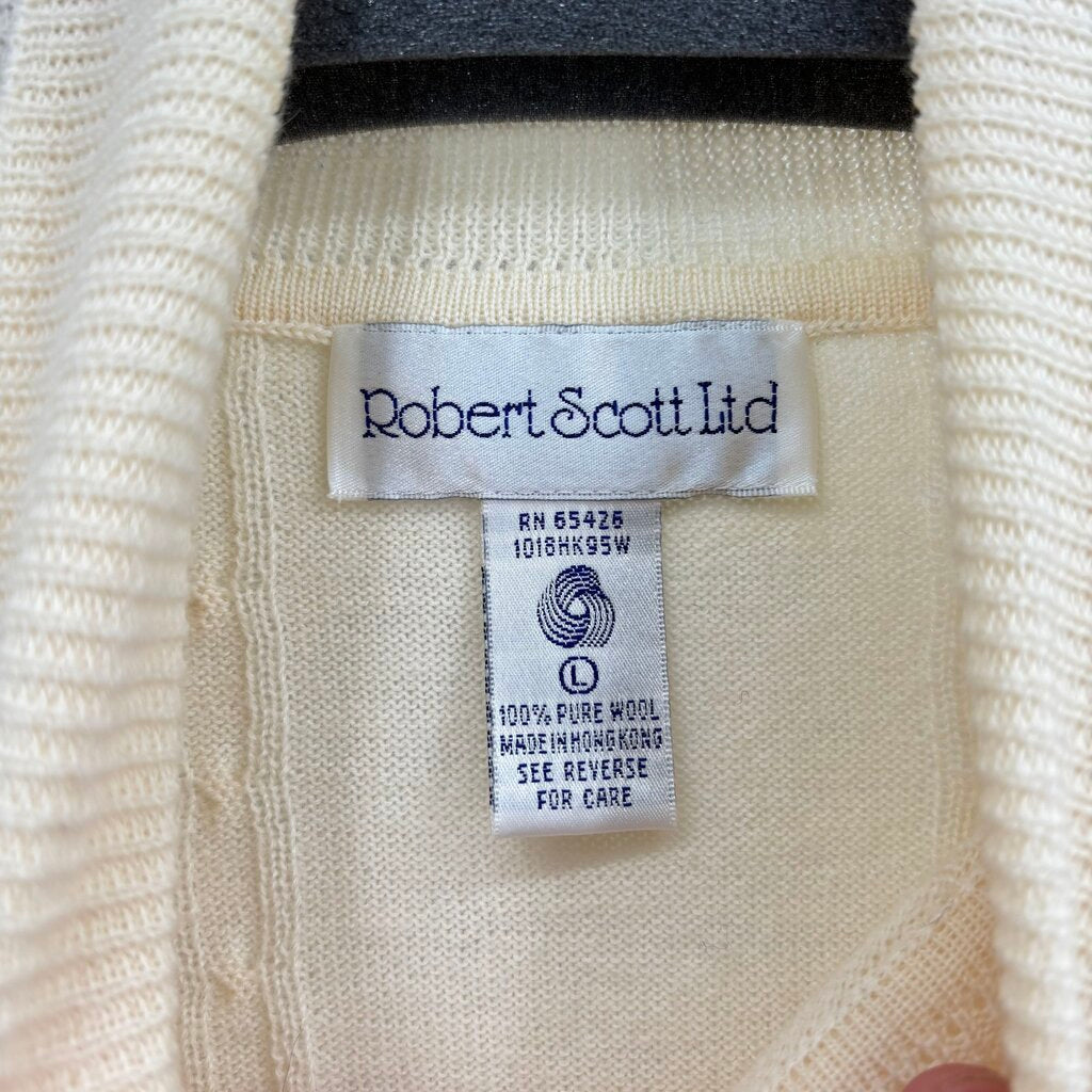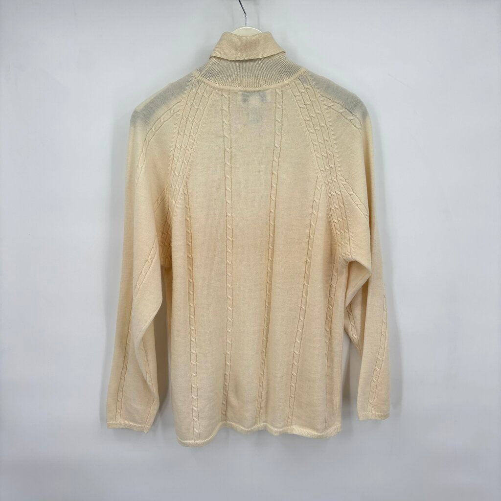 women Robert Scott Fine Gauge Wool Cable Knit Turtleneck Cream Sweater L
