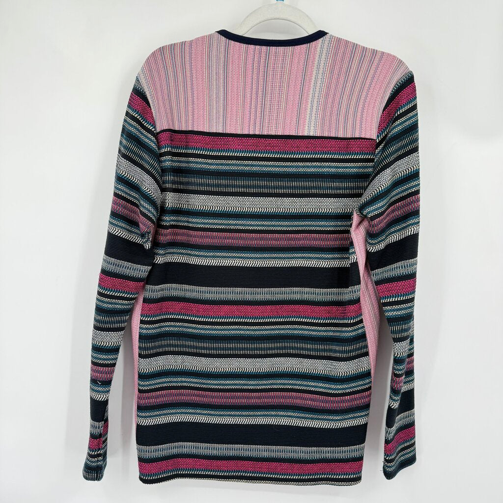 men Mr Turk Patterned Long Sleeve Henley Navy Blue Teal, Cream Pink Knit Top XS