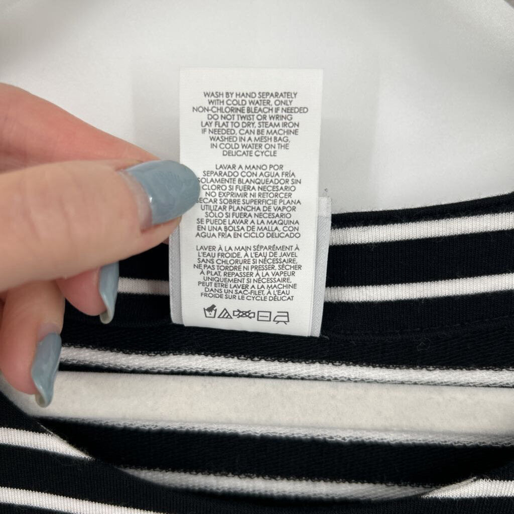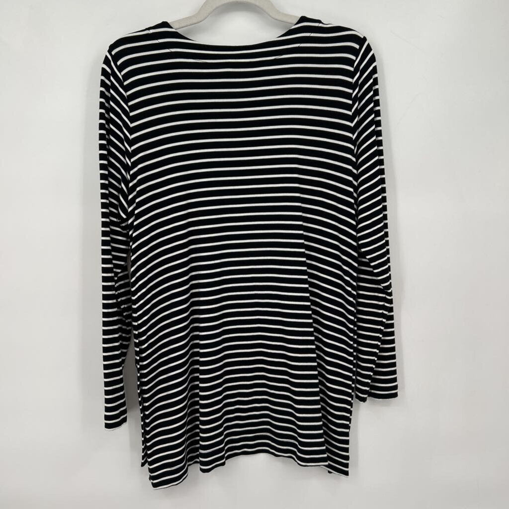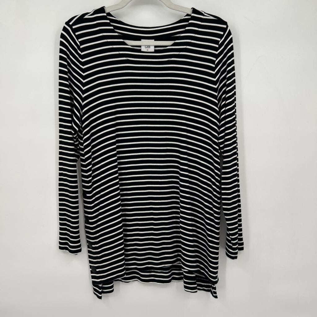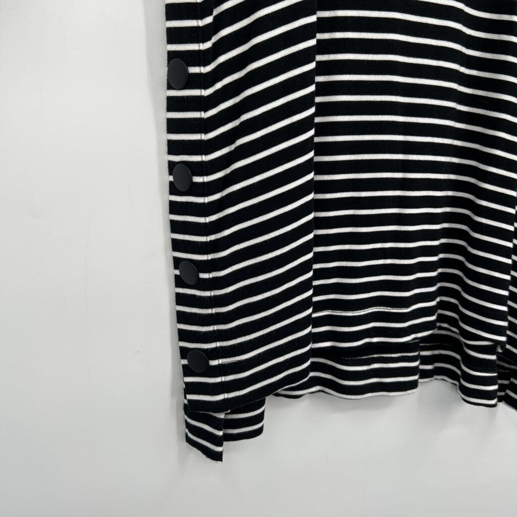 women Cabi Striped Long Sleeve Side Buttons Black White Knit Top M