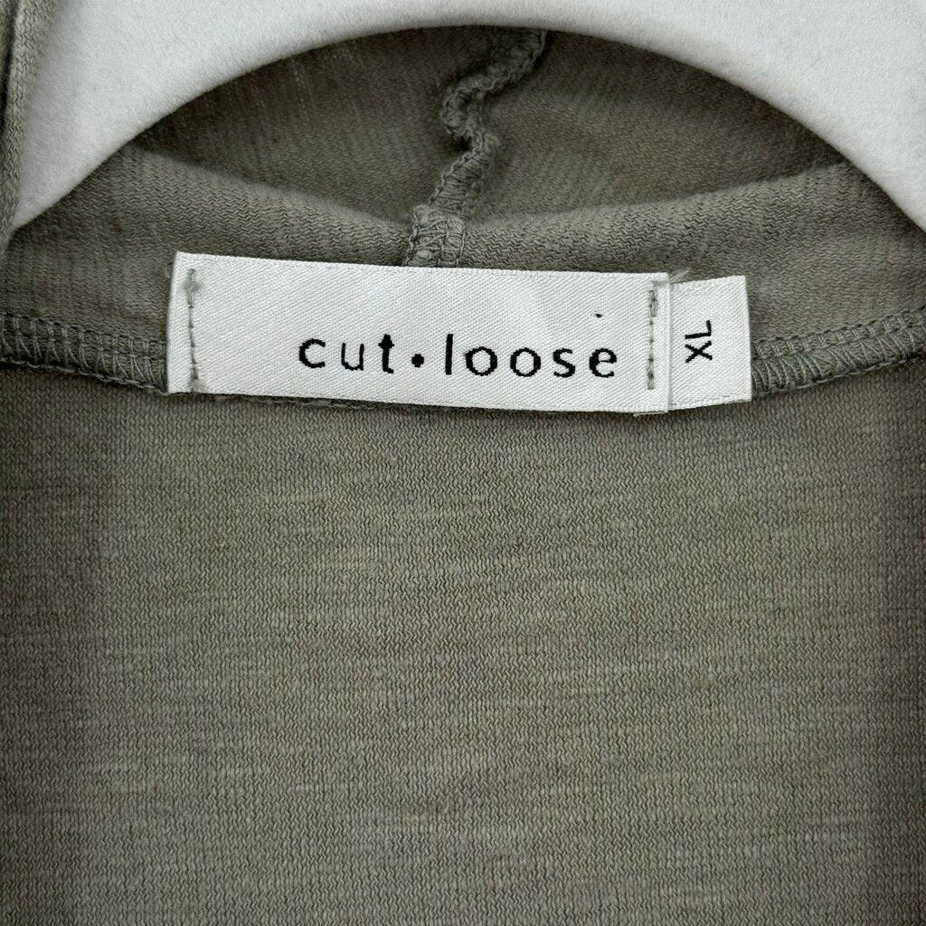 women Cut Loose Cropped Wrap Sage Green Knit Top XL