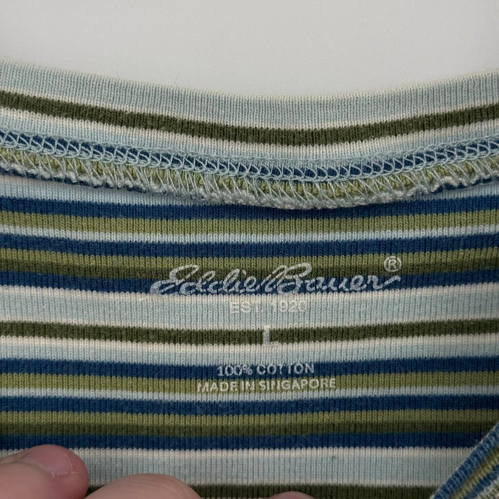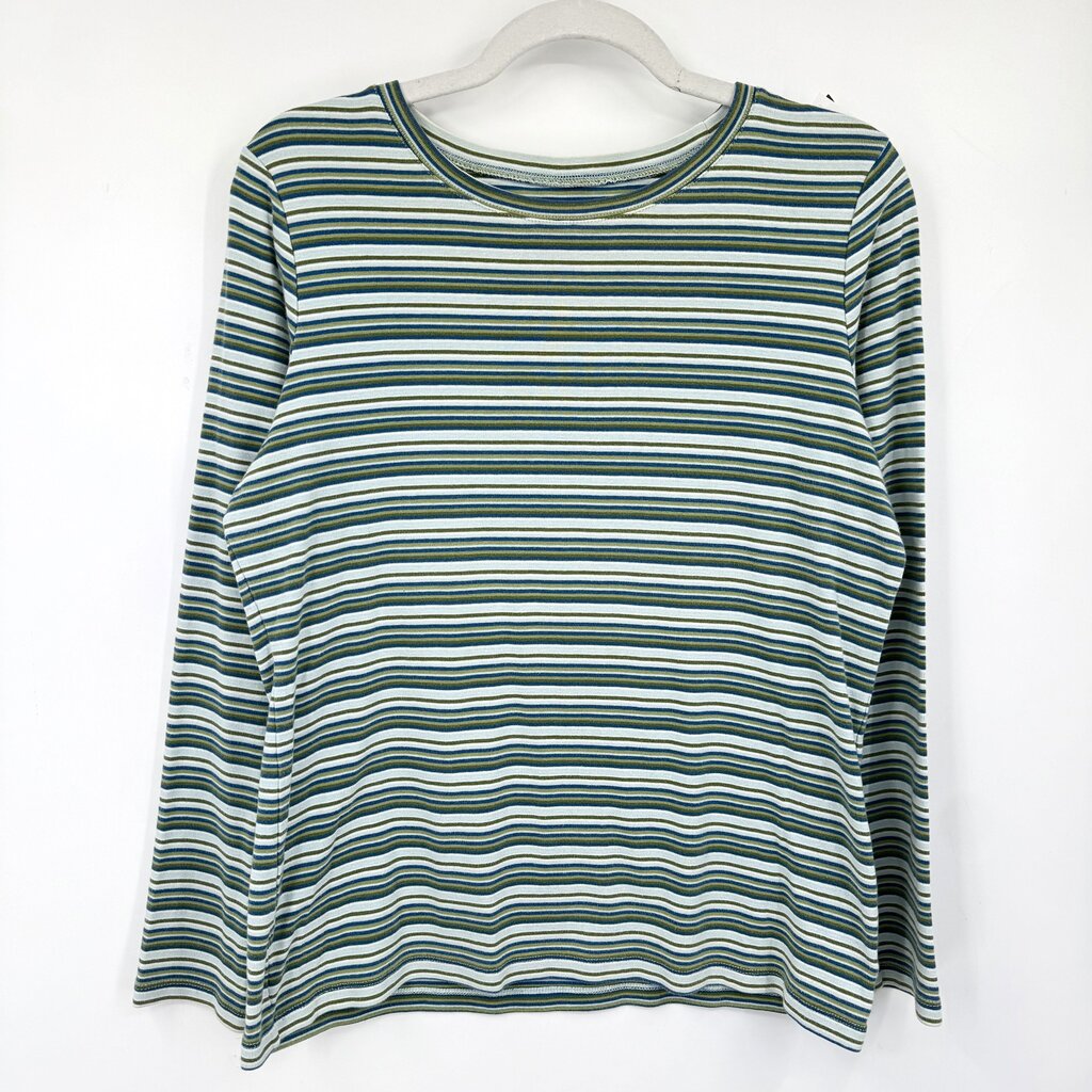 women Eddie Bauer Cotton Striped Long Sleeve Tee Blue Green Knit Top L