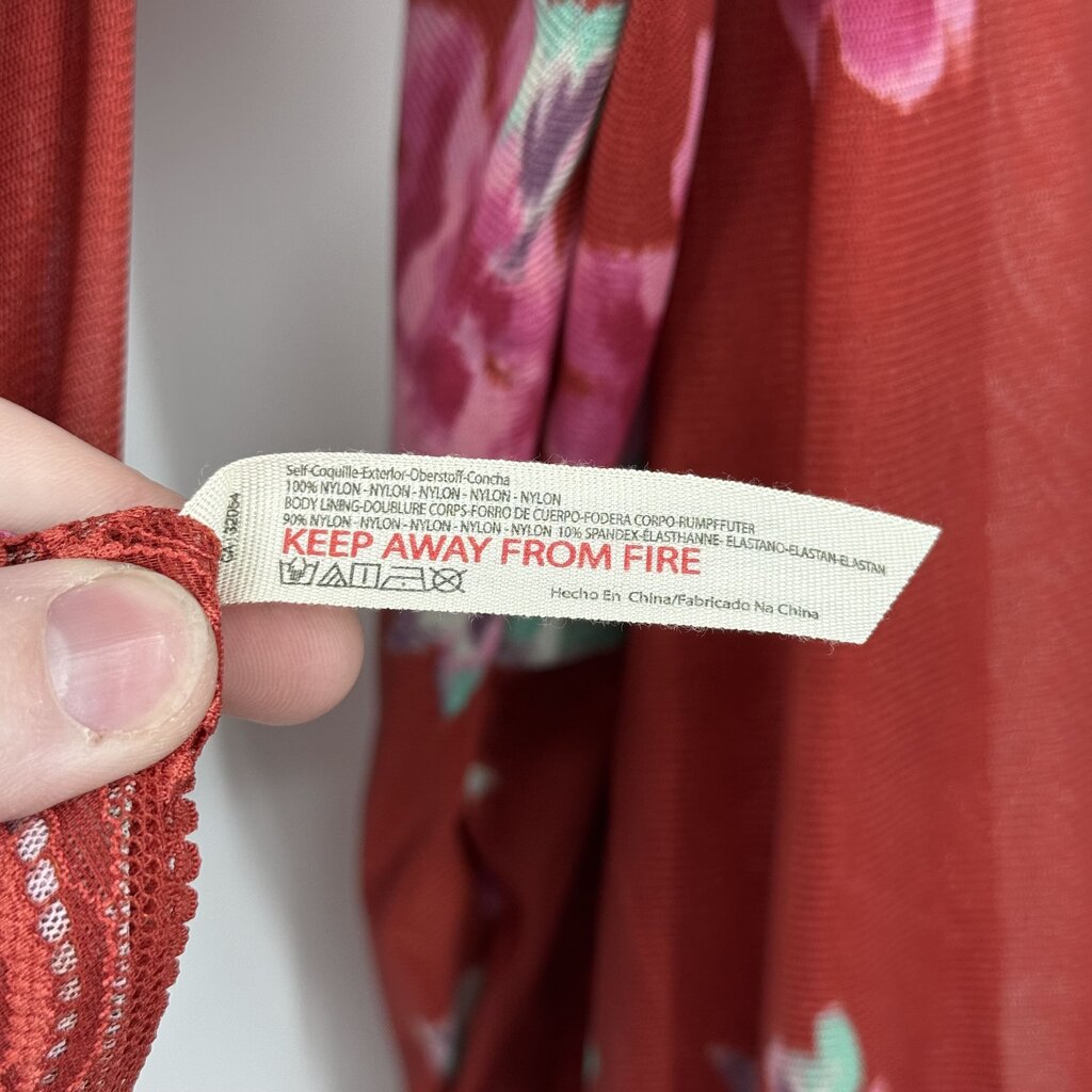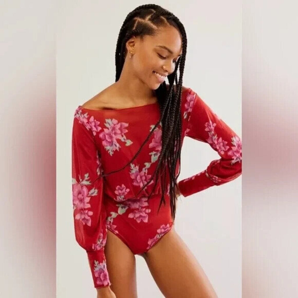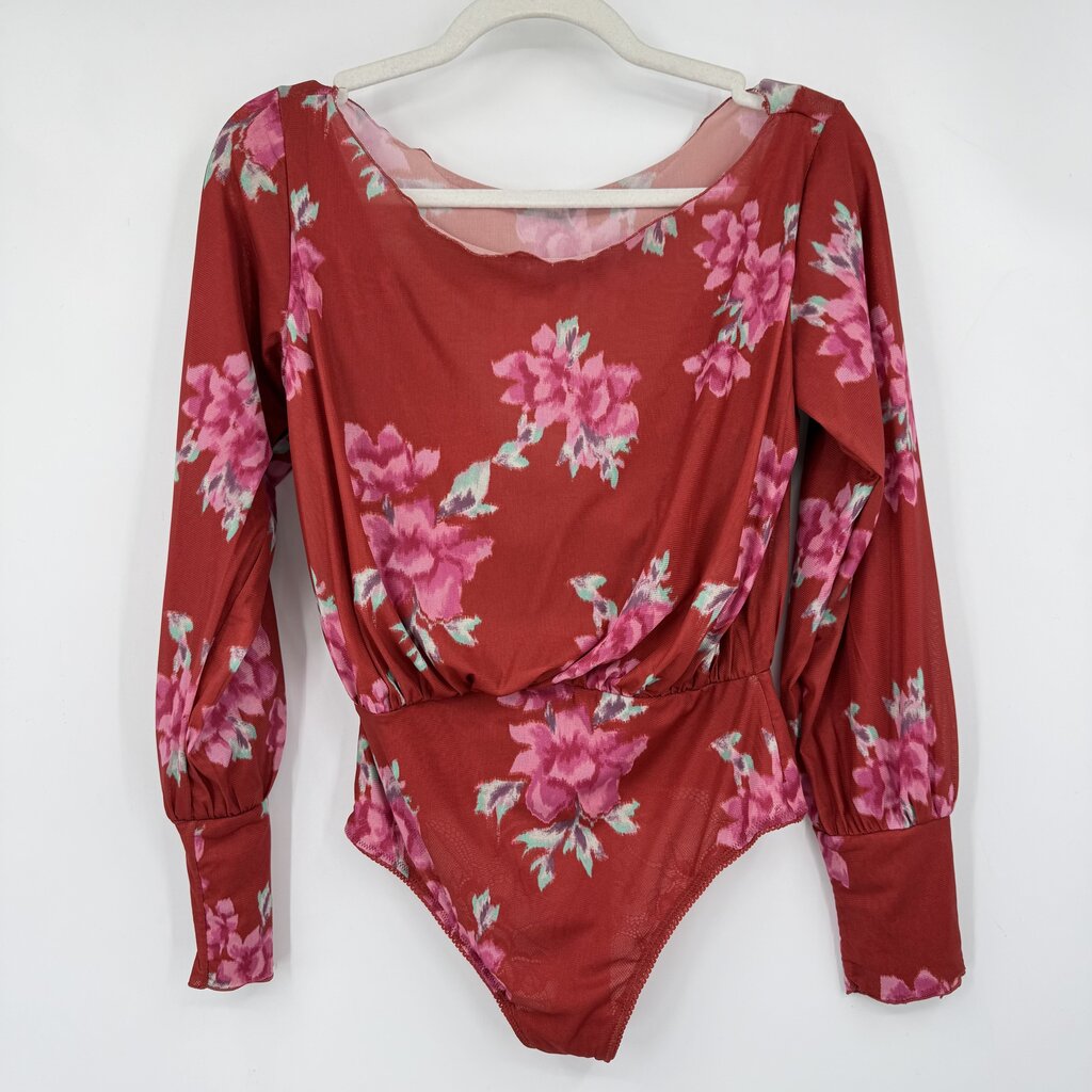 women Free People Undercover Floral Printed Bodysuit Scarlett Pink Green Knit Top S