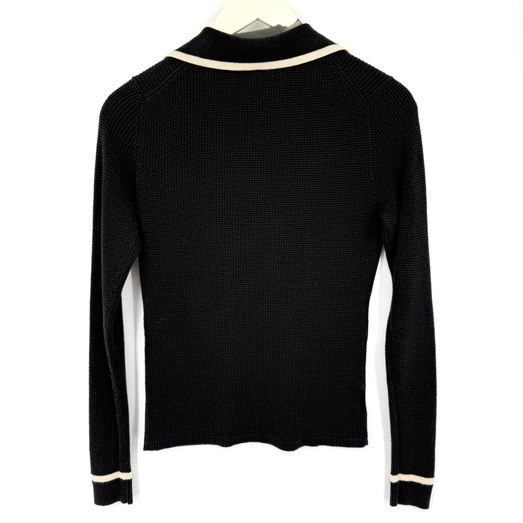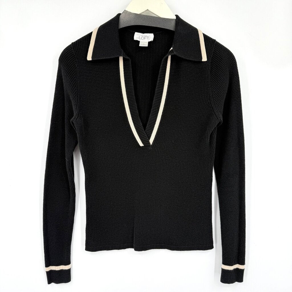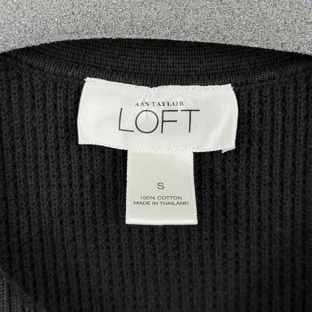 women Loft Johnny Collar Waffle Knit Black Knit Top S