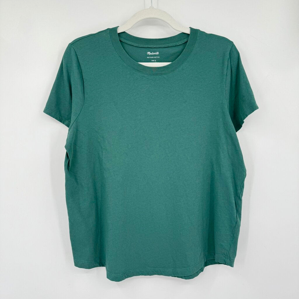 women Madewell Softfade Cotton Tee Pine Green Knit Top L