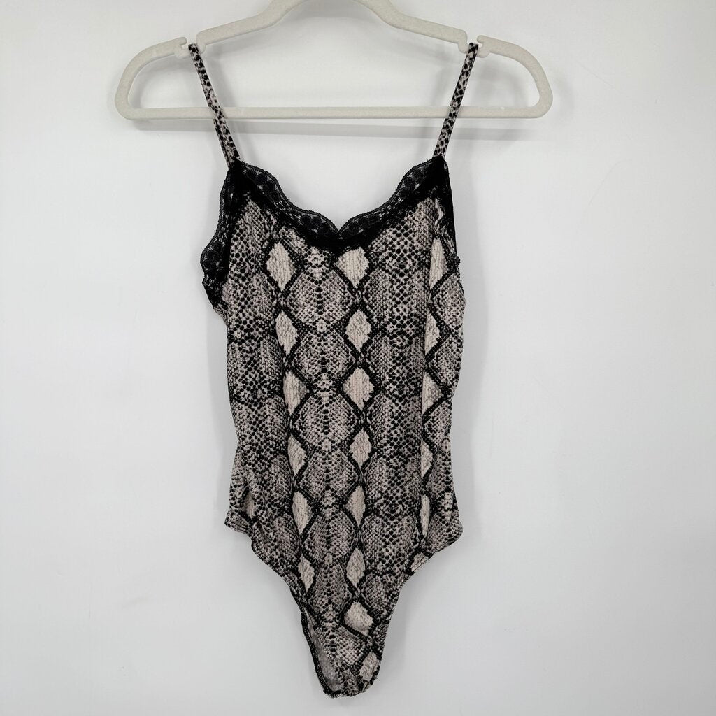women Polly & Esther Snake Print Bodysuit Black White Knit Top S
