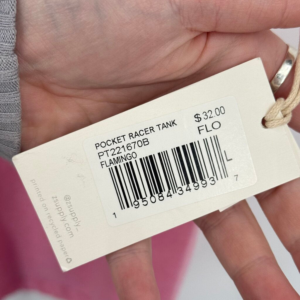women Z Supply NWT Pocket Racer Tank Flamingo Pink Knit Top L